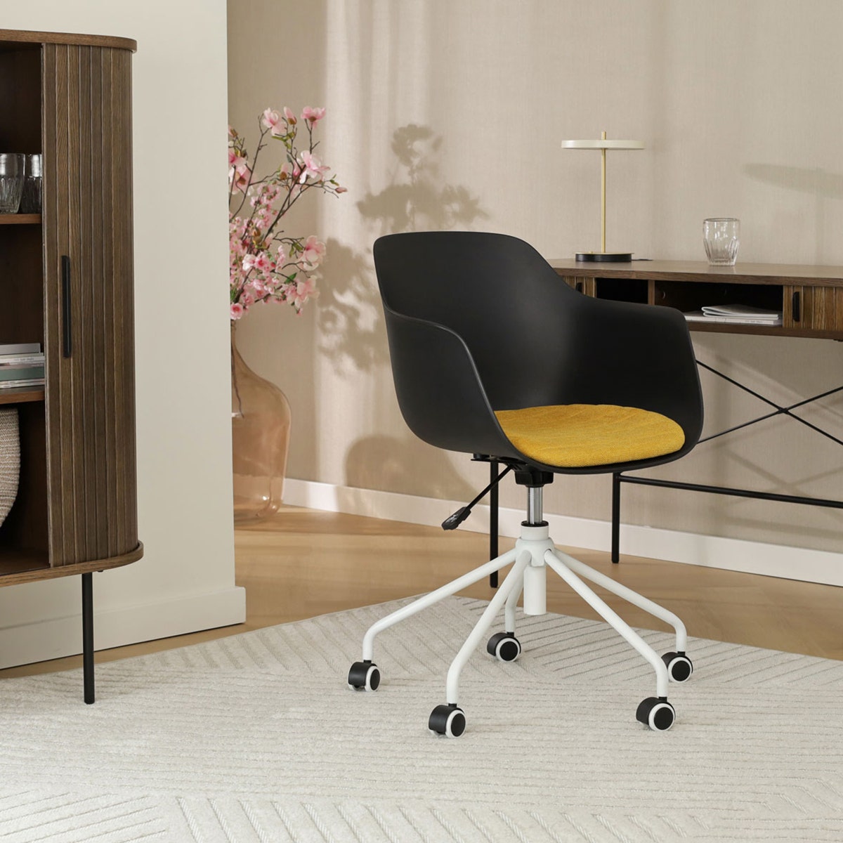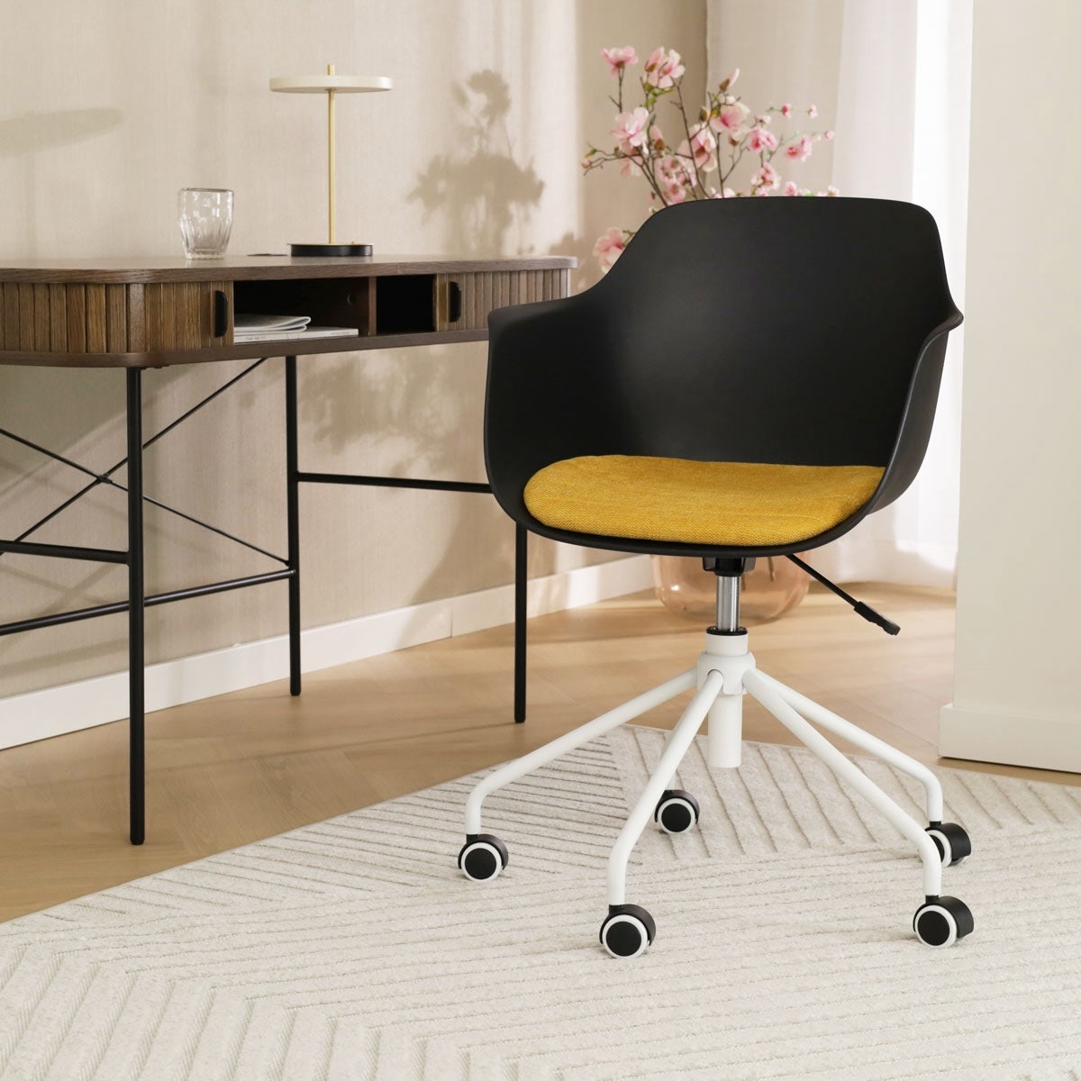 De Nout bureaustoel van Nolon is niet zomaar een standaard bureaustoel. Nout is een moderne bureaustoel, waar je zeker wel op wilt (thuis) werken of studeren. De zitting van de bureaustoel is verkrijgbaar in het kunststof en je kunt kiezen uit verschillende kleuren vaste zitkussens in de stoel. Bovendien heeft de zitting armleuningen, voor net nog iets meer comfort. Het onderstel is gemaakt van metaal en is in hoogte verstelbaar. Kortom, een moderne bureaustoel, waarin je ook lekker zit tijdens lange vergaderingen.
