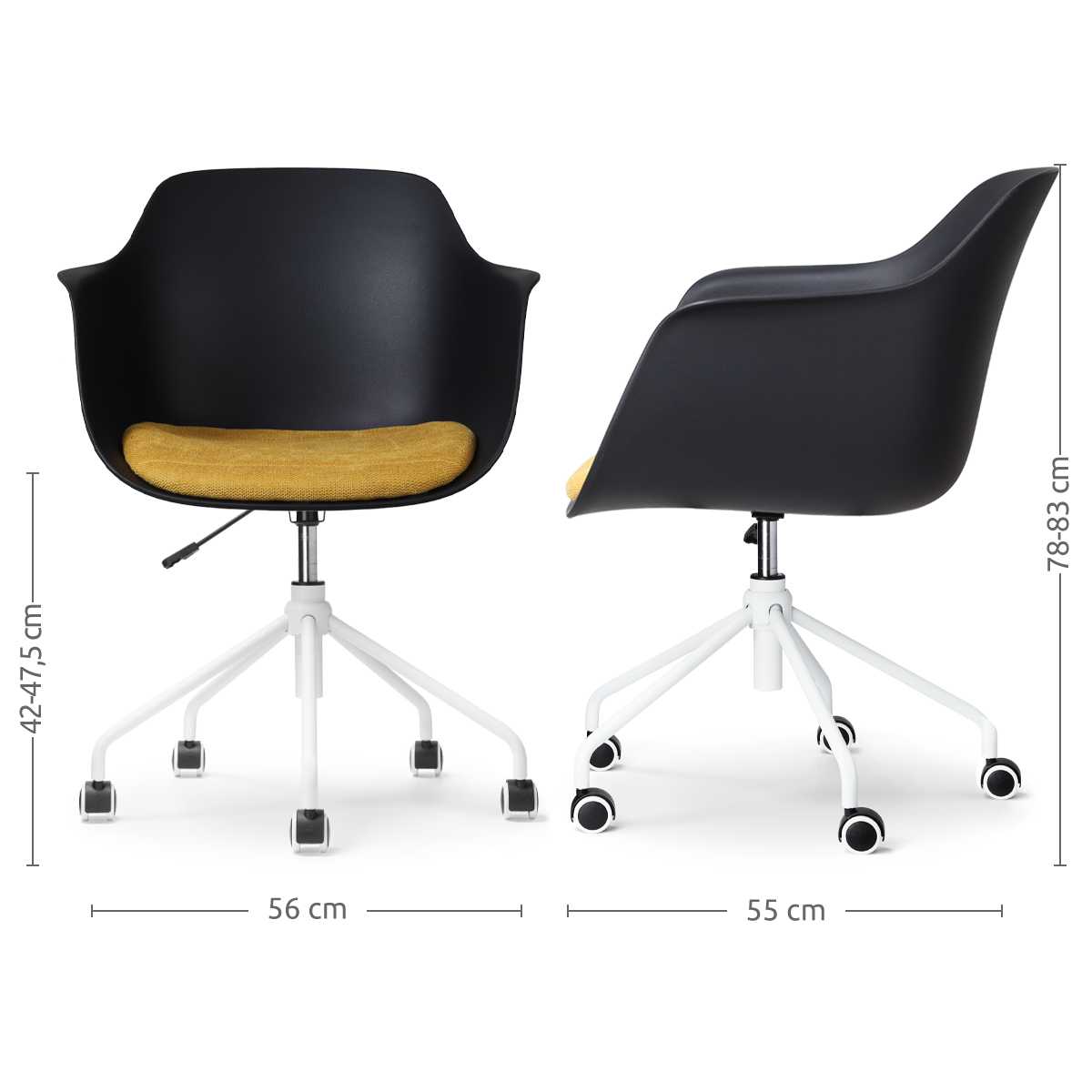- Zithoogte is verstelbaar van 42,5 cm tot 48,5 cm hoog