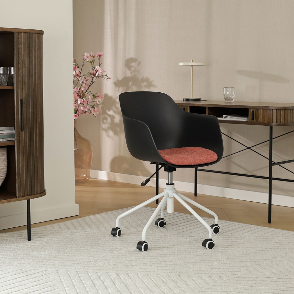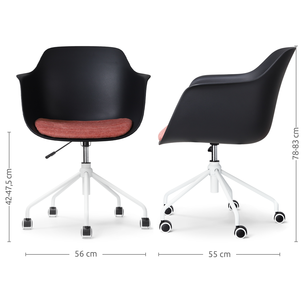De Nout bureaustoel van Nolon is niet zomaar een standaard bureaustoel. Nout is een moderne bureaustoel, waar je zeker wel op wilt (thuis) werken of studeren. De zitting van de bureaustoel is verkrijgbaar in het kunststof en je kunt kiezen uit verschillende kleuren vaste zitkussens in de stoel. Bovendien heeft de zitting armleuningen, voor net nog iets meer comfort. Het onderstel is gemaakt van metaal en is in hoogte verstelbaar. Kortom, een moderne bureaustoel, waarin je ook lekker zit tijdens lange vergaderingen.