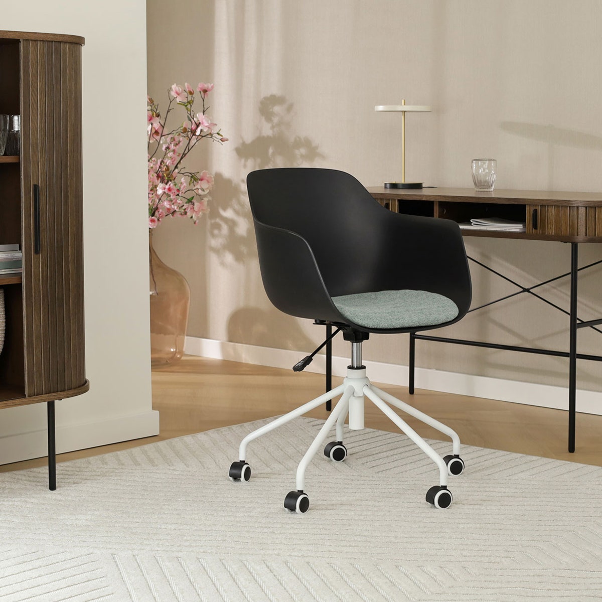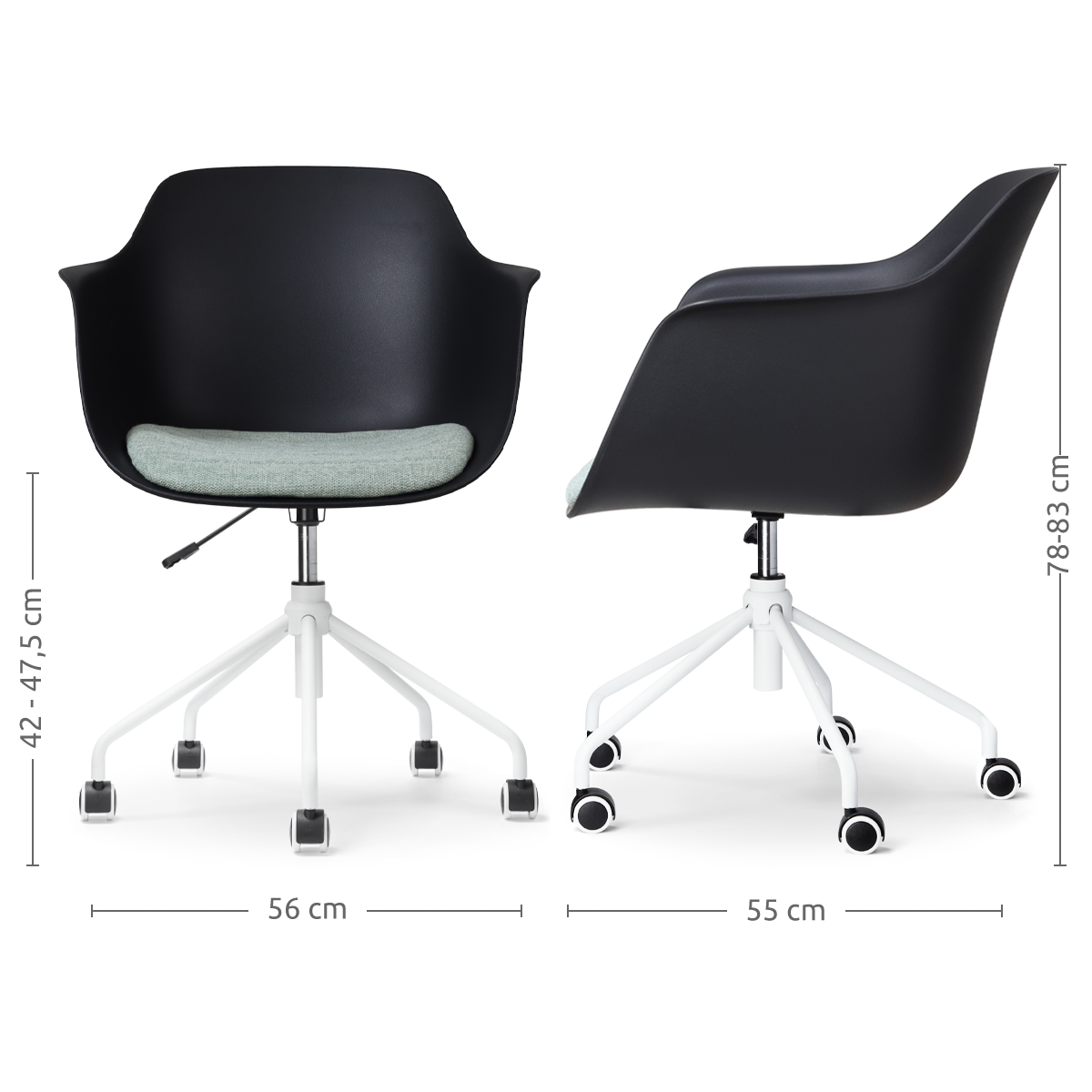 De Nout bureaustoel van Nolon is niet zomaar een standaard bureaustoel. Nout is een moderne bureaustoel, waar je zeker wel op wilt (thuis) werken of studeren. De zitting van de bureaustoel is verkrijgbaar in het kunststof en je kunt kiezen uit verschillende kleuren vaste zitkussens in de stoel. Bovendien heeft de zitting armleuningen, voor net nog iets meer comfort. Het onderstel is gemaakt van metaal en is in hoogte verstelbaar. Kortom, een moderne bureaustoel, waarin je ook lekker zit tijdens lange vergaderingen.