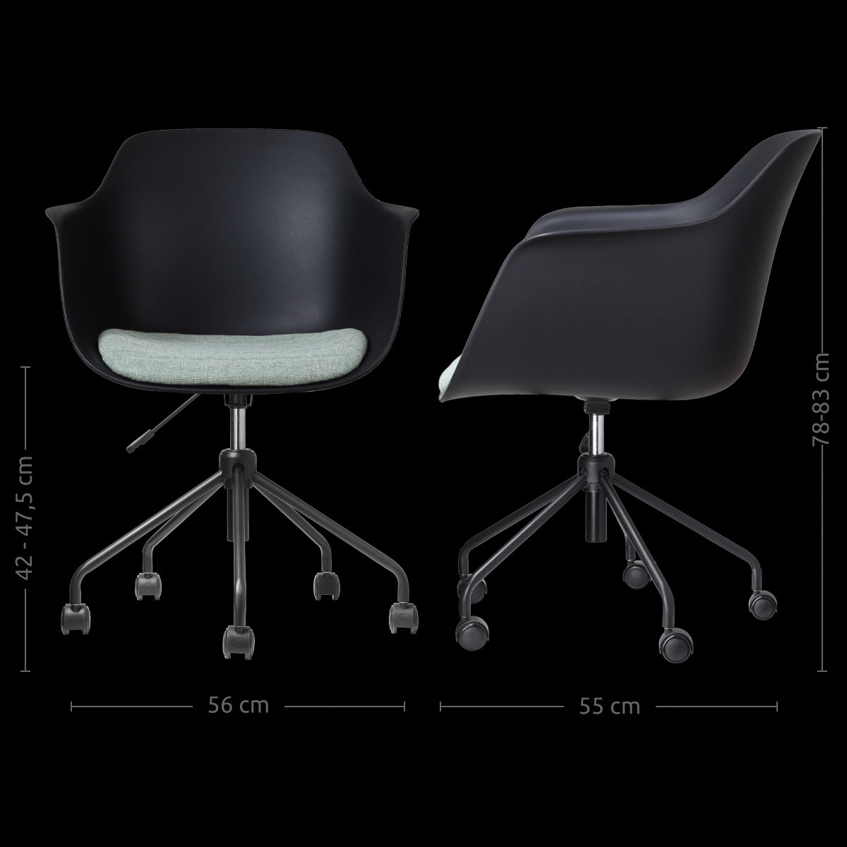 Nolon Nout-Liz Bureaustoel Zwart - Zacht Groen Kussen - Zwart