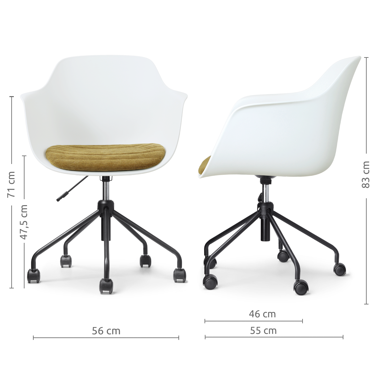 Nolon Nout-Liz eetkamerstoel wit met mosgroen zitkussen - zwart