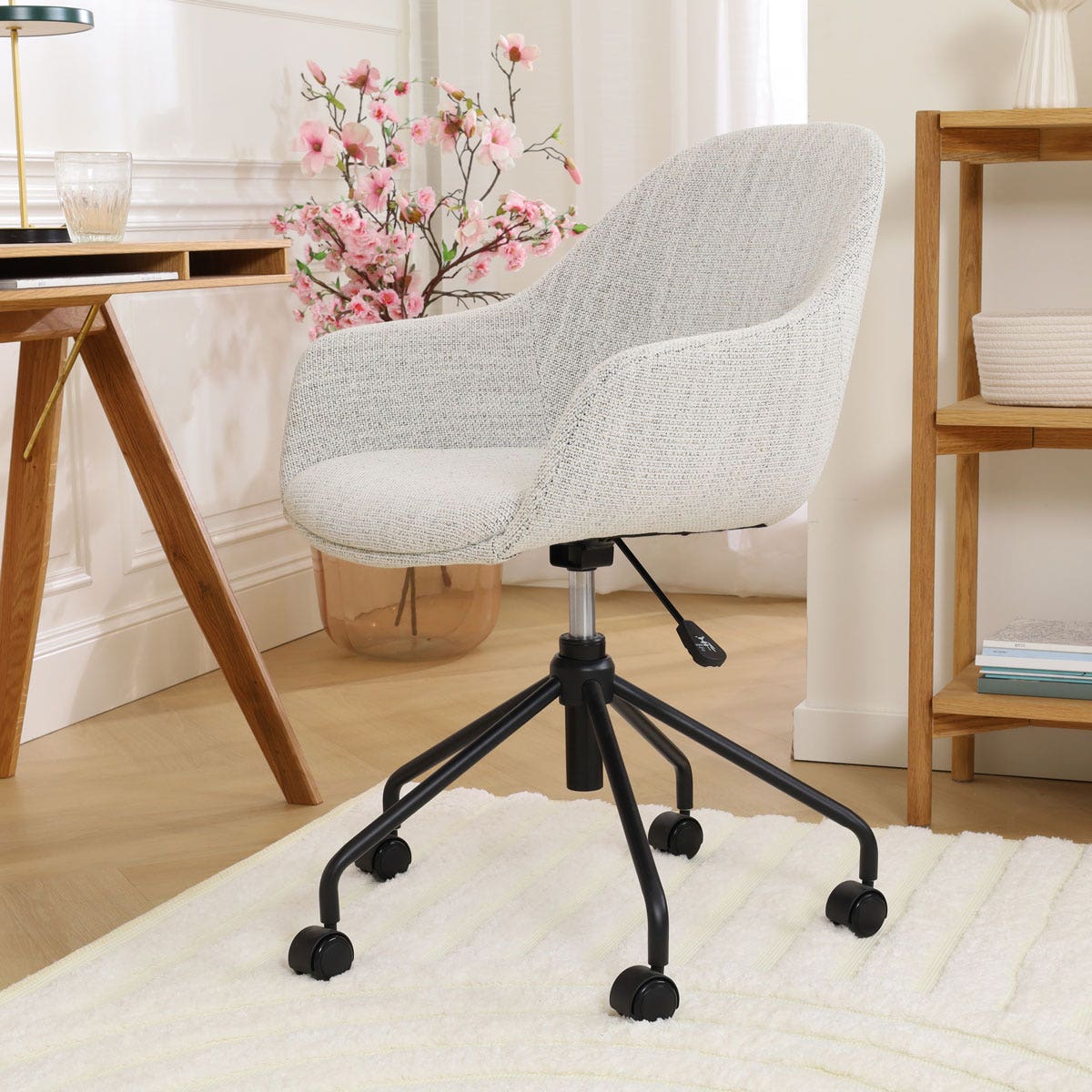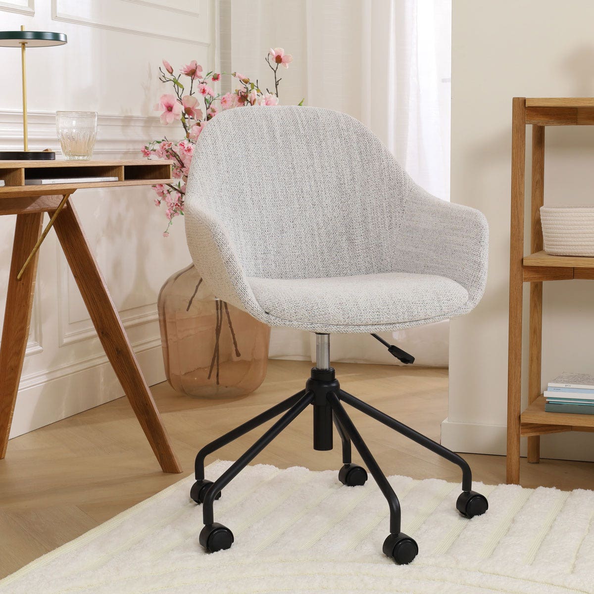 Met de Nout-Mae bureaustoel in het beige gemêleerde stof en zwarte poten van Nolon van je van jouw thuiswerkplek een gezellige ruimte.