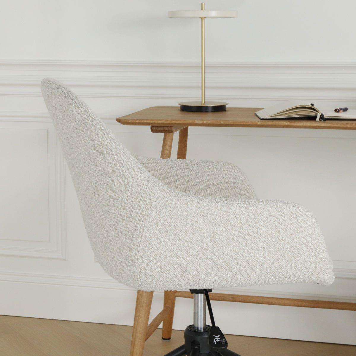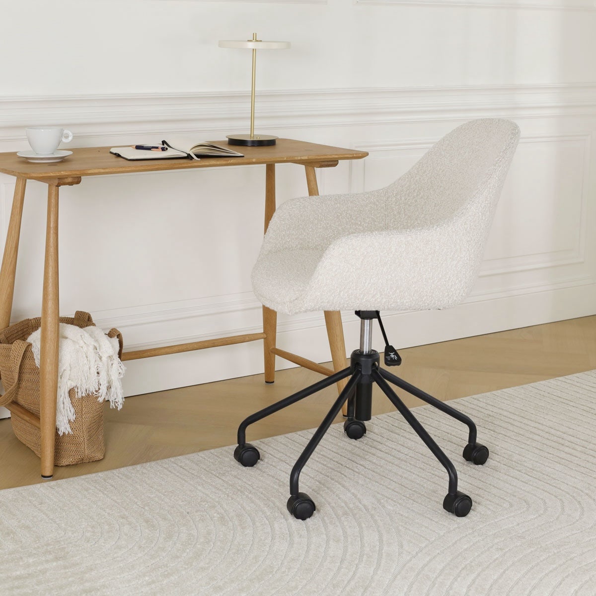 Modern en comfortabel: de Nout-Mae bureaustoel in beige bouclé.
