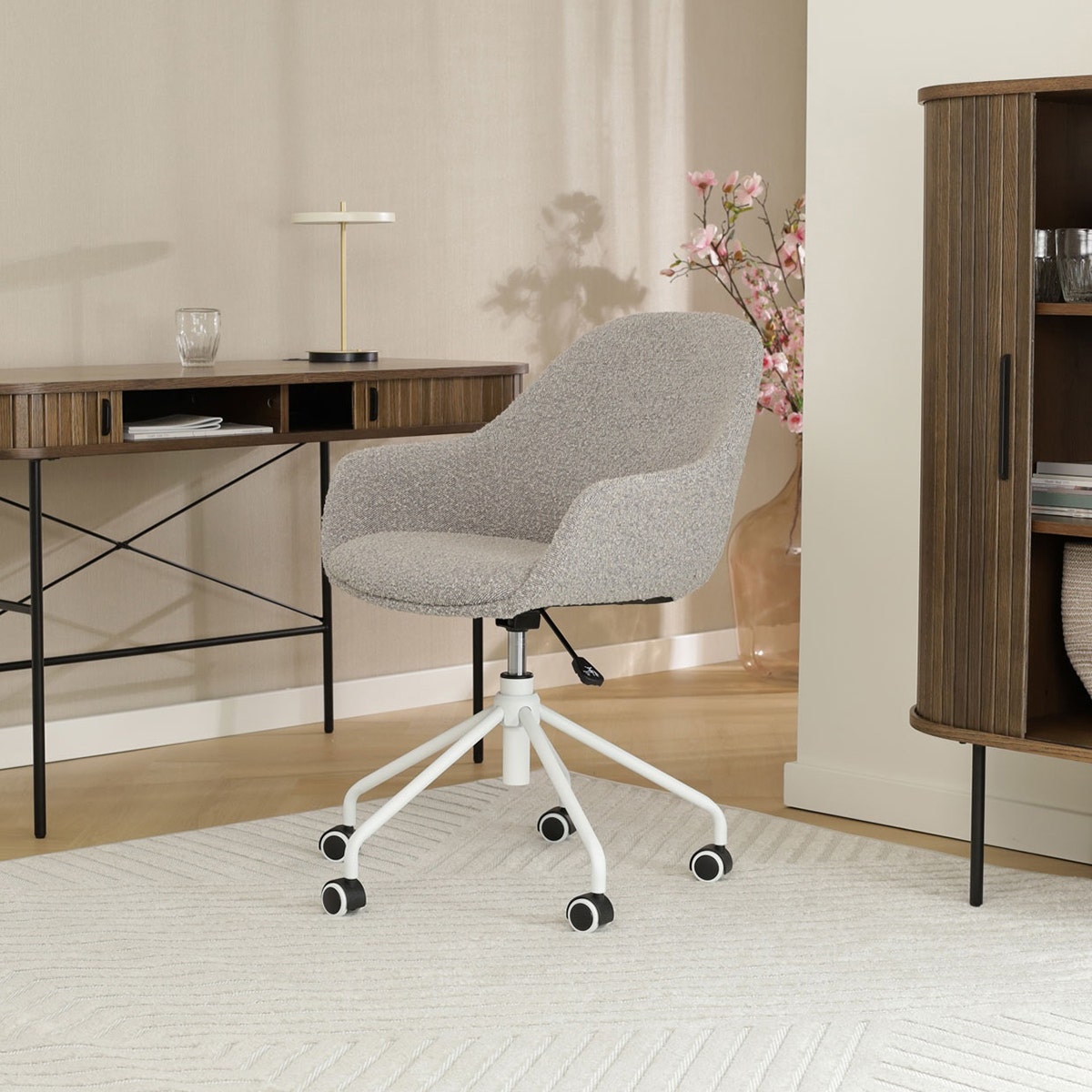 Moderne bureaustoel met Scandinavische flair: Nout-Mae bouclé taupe.
