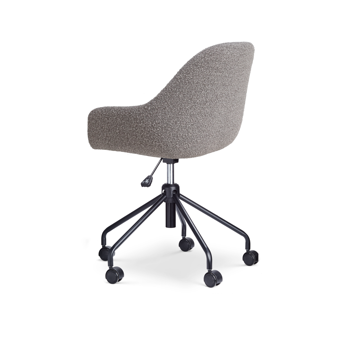 De Nout-Mae taupe bouclé bureaustoel met armleuning en zwart onderstel is onderdeel van de mix en match collectie van Nolon. Dit betekent dat zowel het onderstel als de zitting van deze stoel in diverse andere combinaties verkrijgbaar zijn. De Mae zitting met armleuning is verkrijgbaar in verschillende materialen en kleuren, maar ook alle andere zittingen van Nolon kunnen op het Nout onderstel worden gecombineerd. Het Nout onderstel is verkrijgbaar in zowel wit als zwart.
