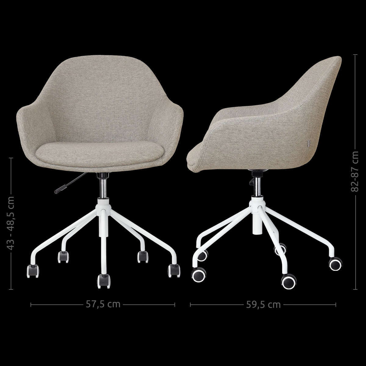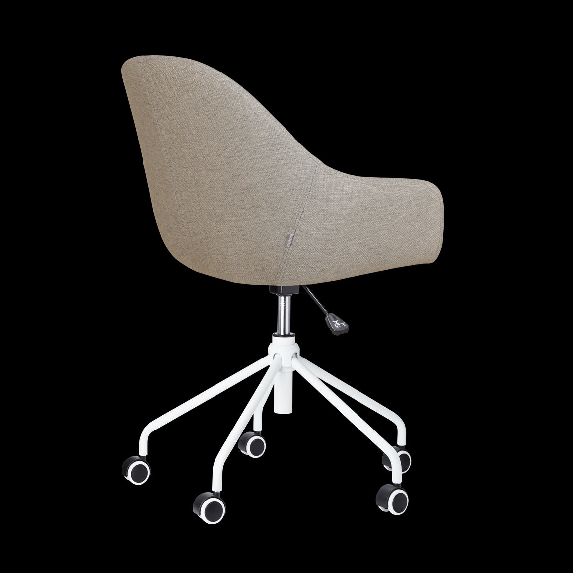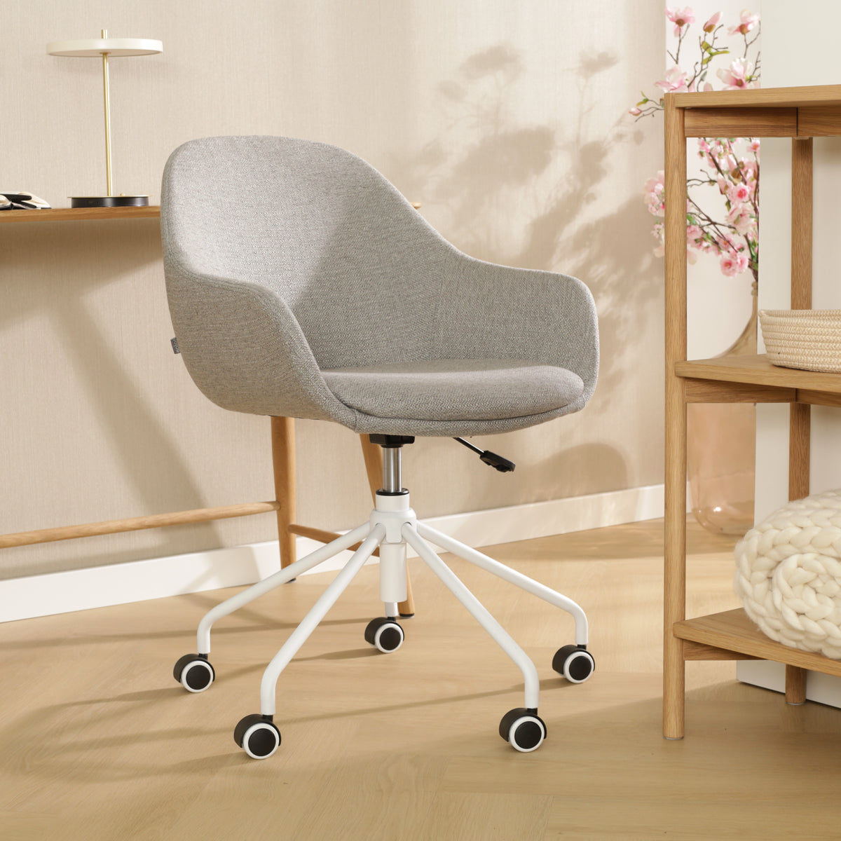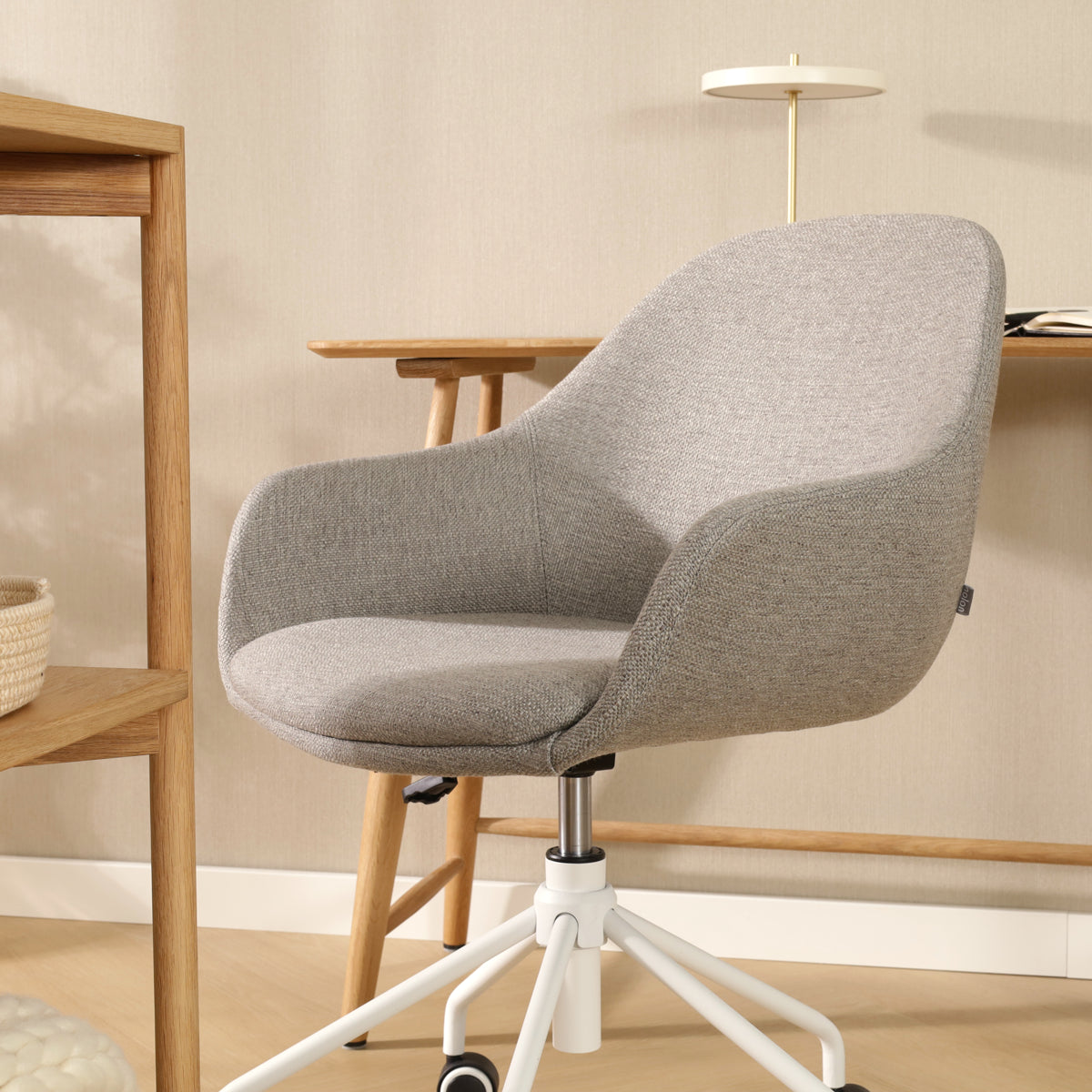 Stijlvolle bureaustoel in warm grijs met witte poten.