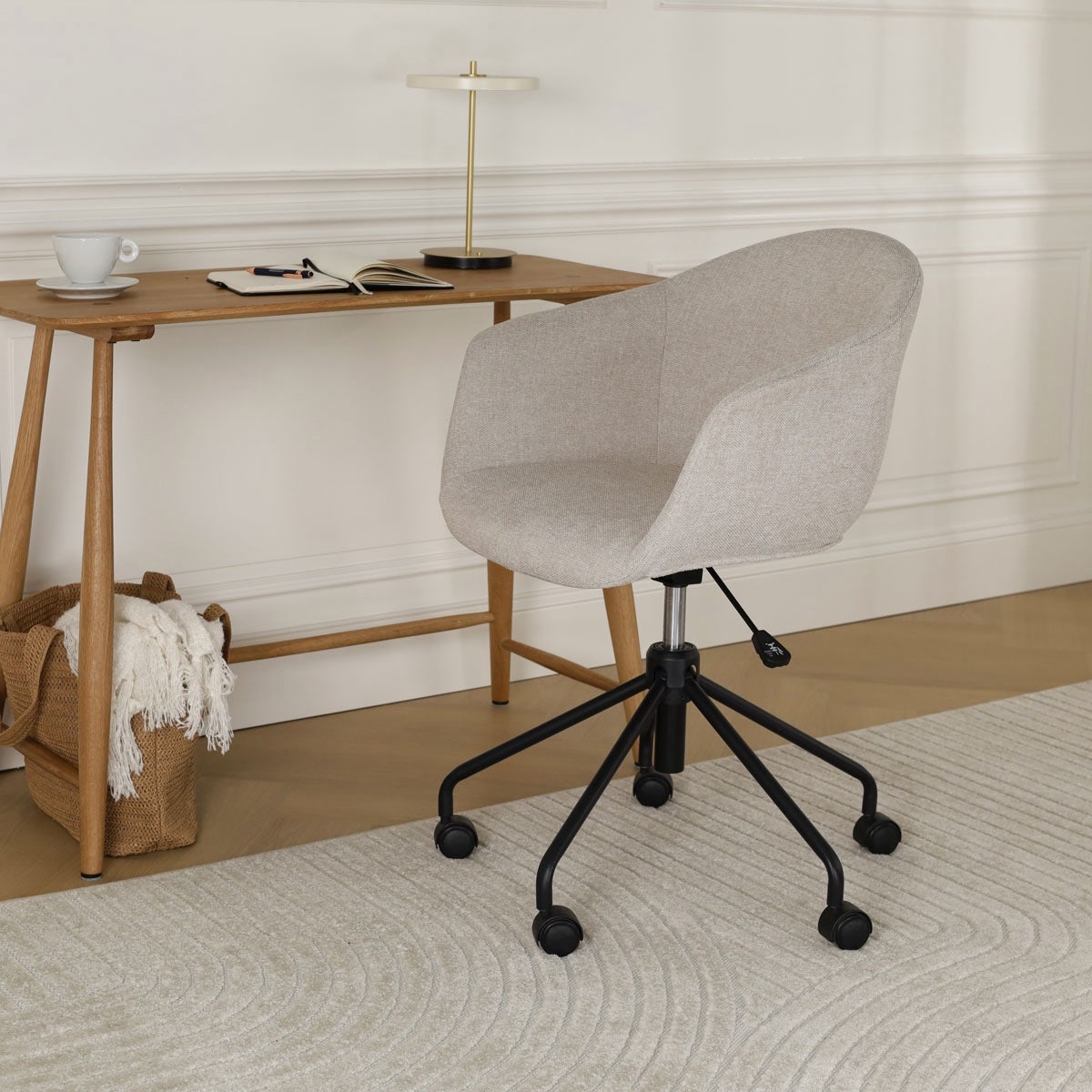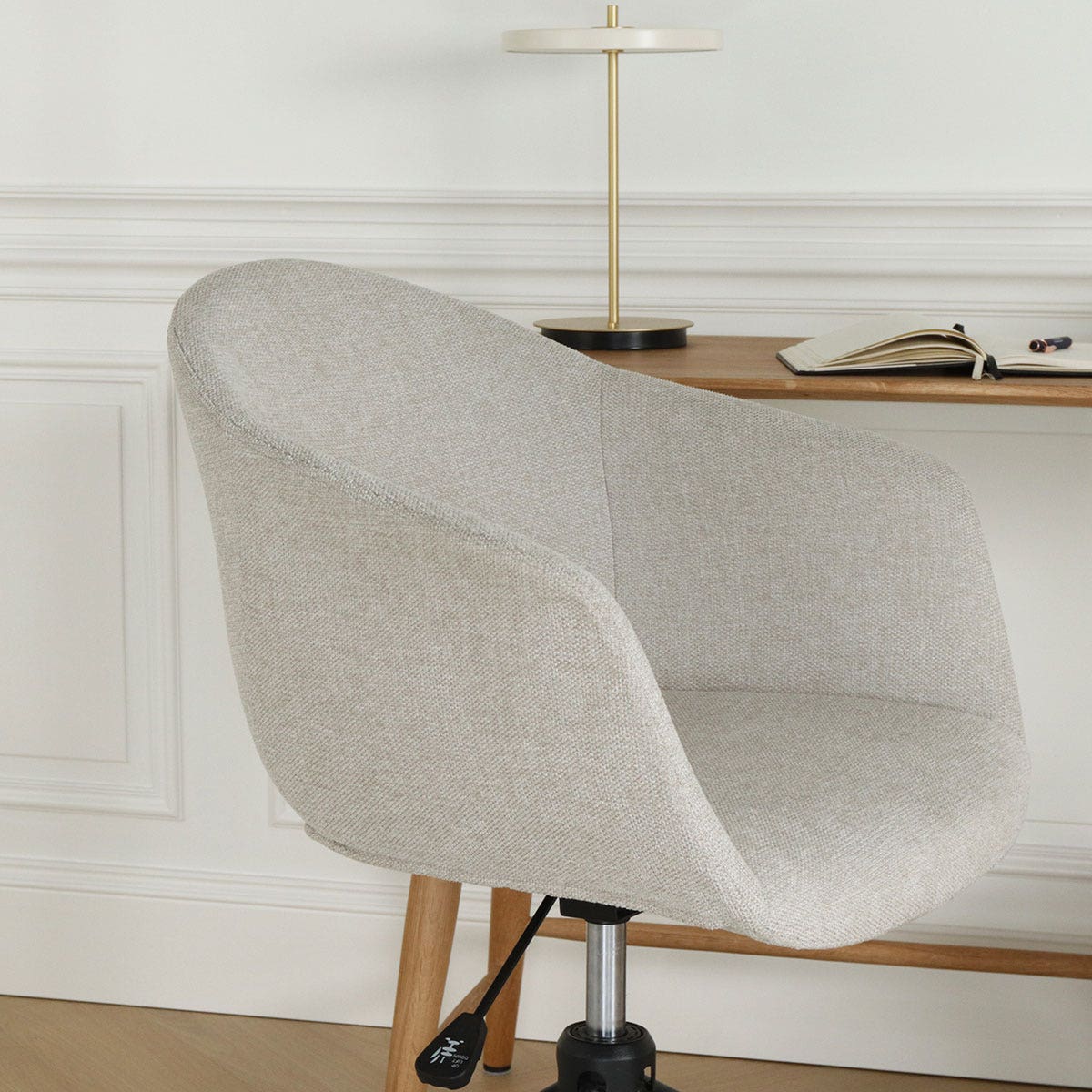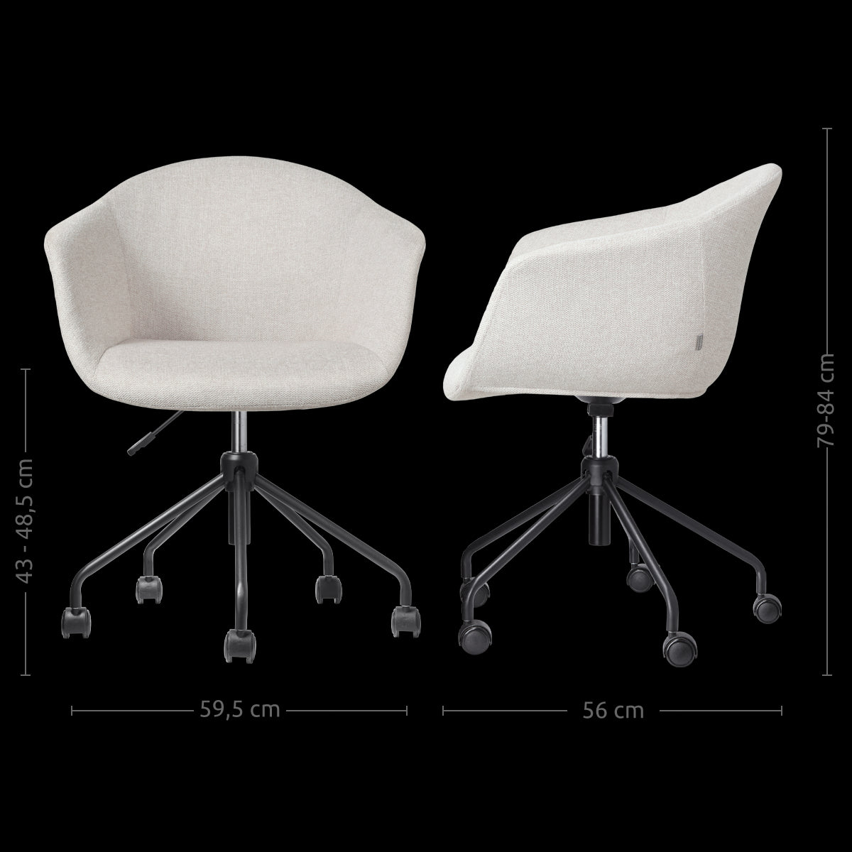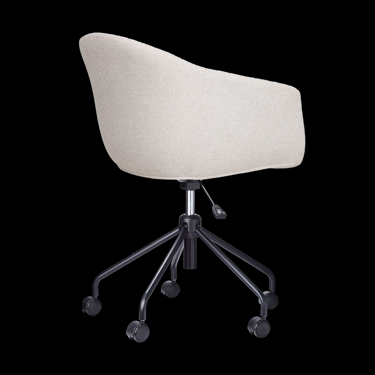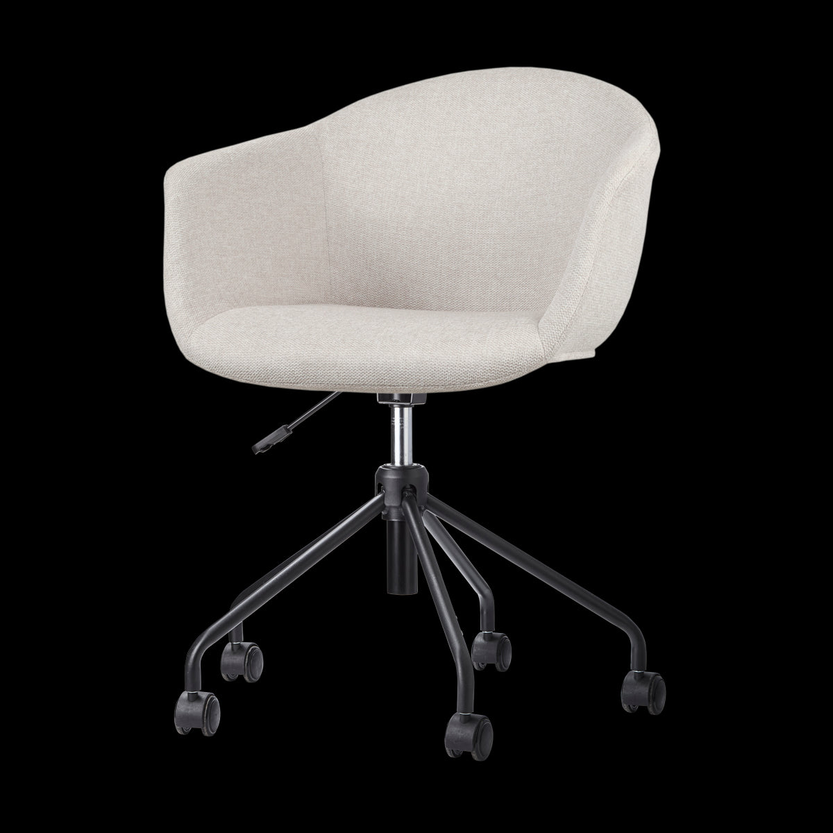Deze bureaustoel heeft een robuust metalen onderstel met vijf soepel rollende wieltjes. De luxueuze stoffen zitting biedt ultiem zitgemak tijdens lange werk- of studeersessies. De ergonomisch ontworpen armleuningen zorgen voor optimale ondersteuning en verminderen spanning in de schouders en nek. Dankzij de verstelbare hoogte van het onderstel kan je de zithoogte aanpassen aan jouw bureau en persoonlijke voorkeur, zodat je altijd de juiste zithouding kan aannemen. Maak een keuze uit de zes verschillende kleuren bekleding en geef je kantoor of thuiswerkplek een upgrade met de Nout-Otis bureaustoel die stijl en functionaliteit perfect combineert. Comfortabel werken was nog nooit zo eenvoudig!
