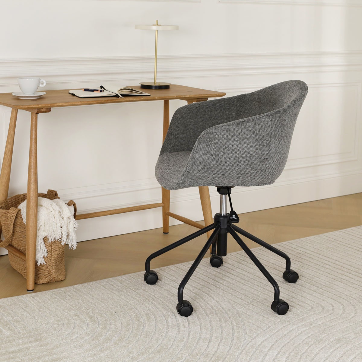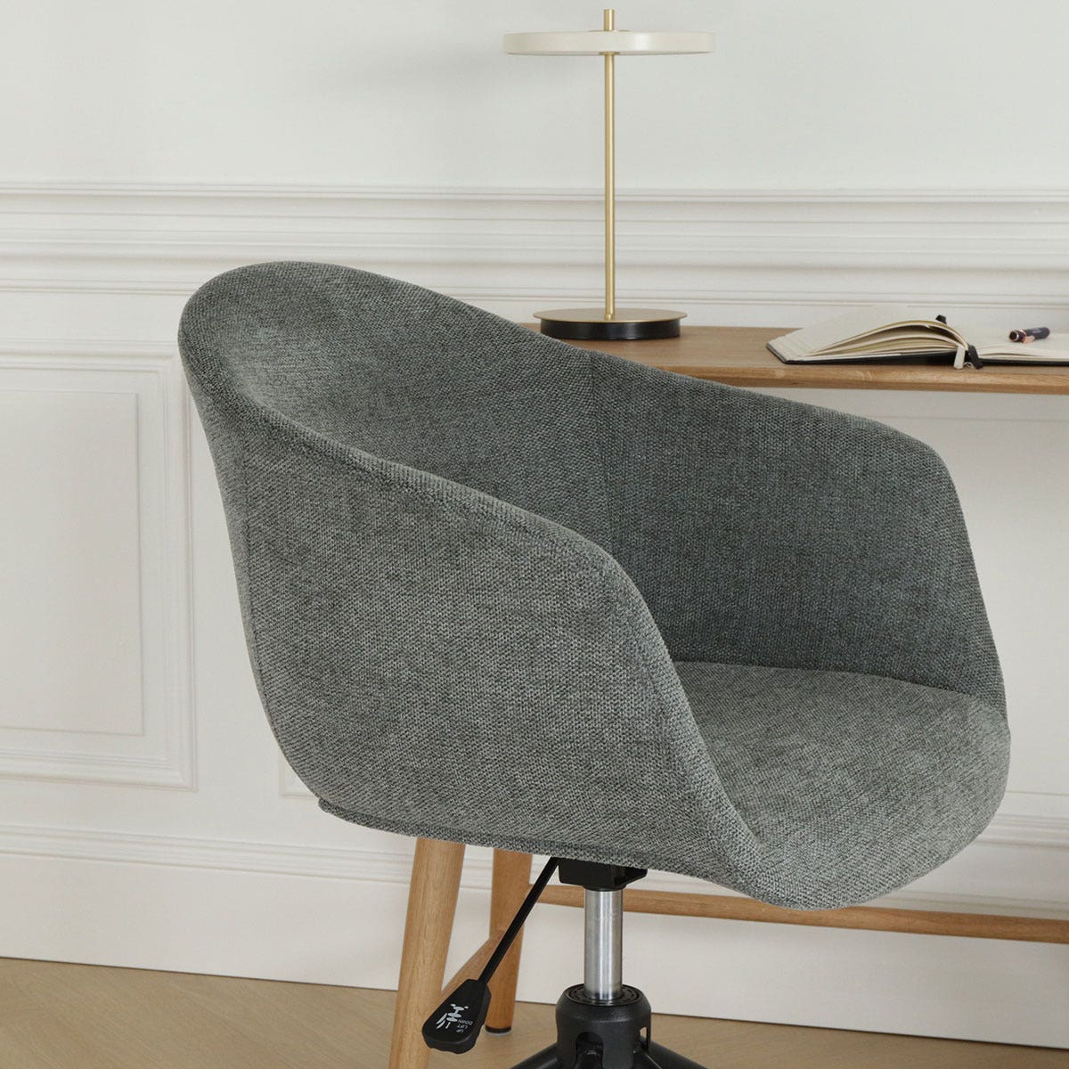 Deze bureaustoel heeft een robuust metalen onderstel met vijf soepel rollende wieltjes. De luxueuze stoffen zitting biedt ultiem zitgemak tijdens lange werk- of studeersessies. De ergonomisch ontworpen armleuningen zorgen voor optimale ondersteuning en verminderen spanning in de schouders en nek. Dankzij de verstelbare hoogte van het onderstel kan je de zithoogte aanpassen aan jouw bureau en persoonlijke voorkeur, zodat je altijd de juiste zithouding kan aannemen. Maak een keuze uit de zes verschillende kleuren bekleding en geef je kantoor of thuiswerkplek een upgrade met de Nout-Otis bureaustoel die stijl en functionaliteit perfect combineert. Comfortabel werken was nog nooit zo eenvoudig!