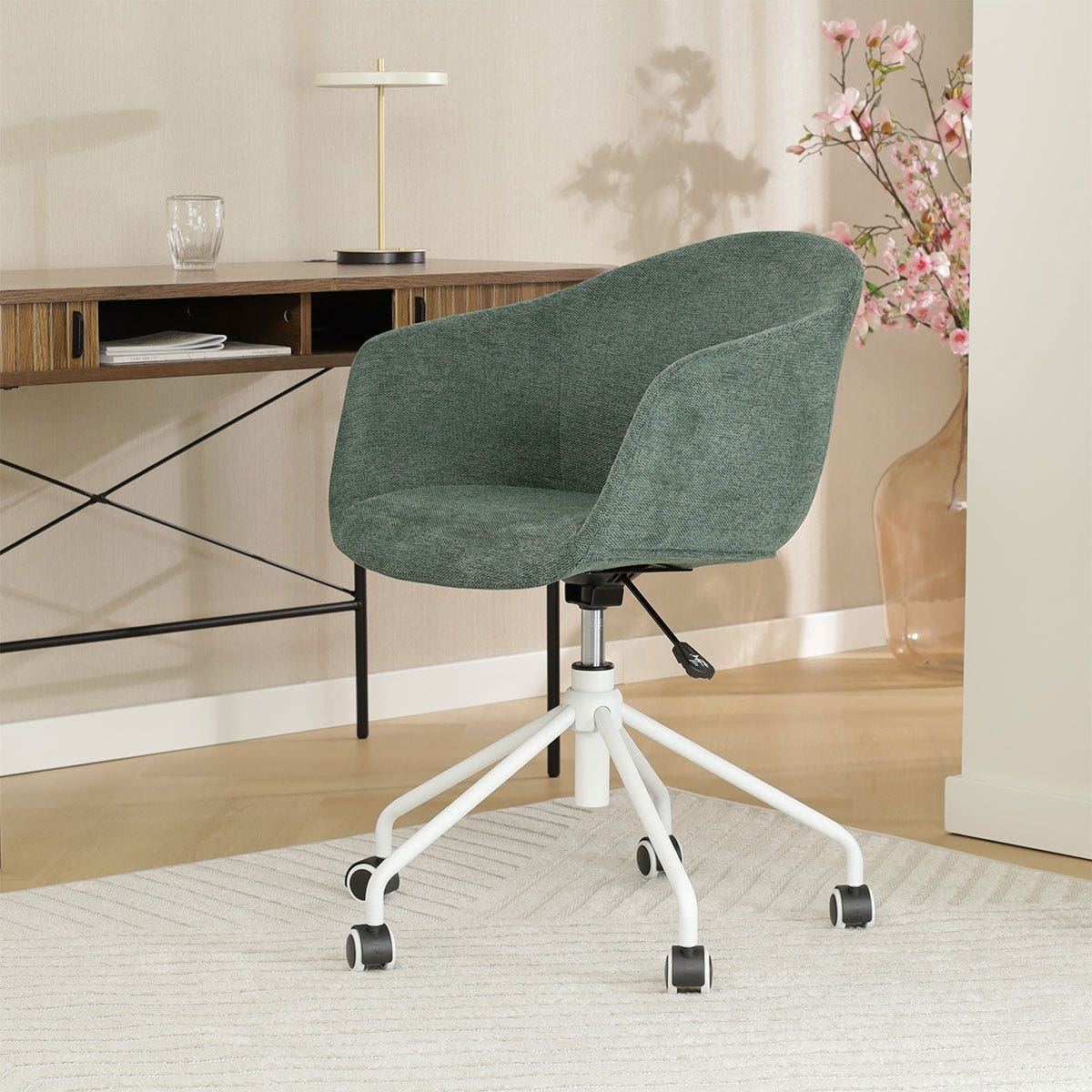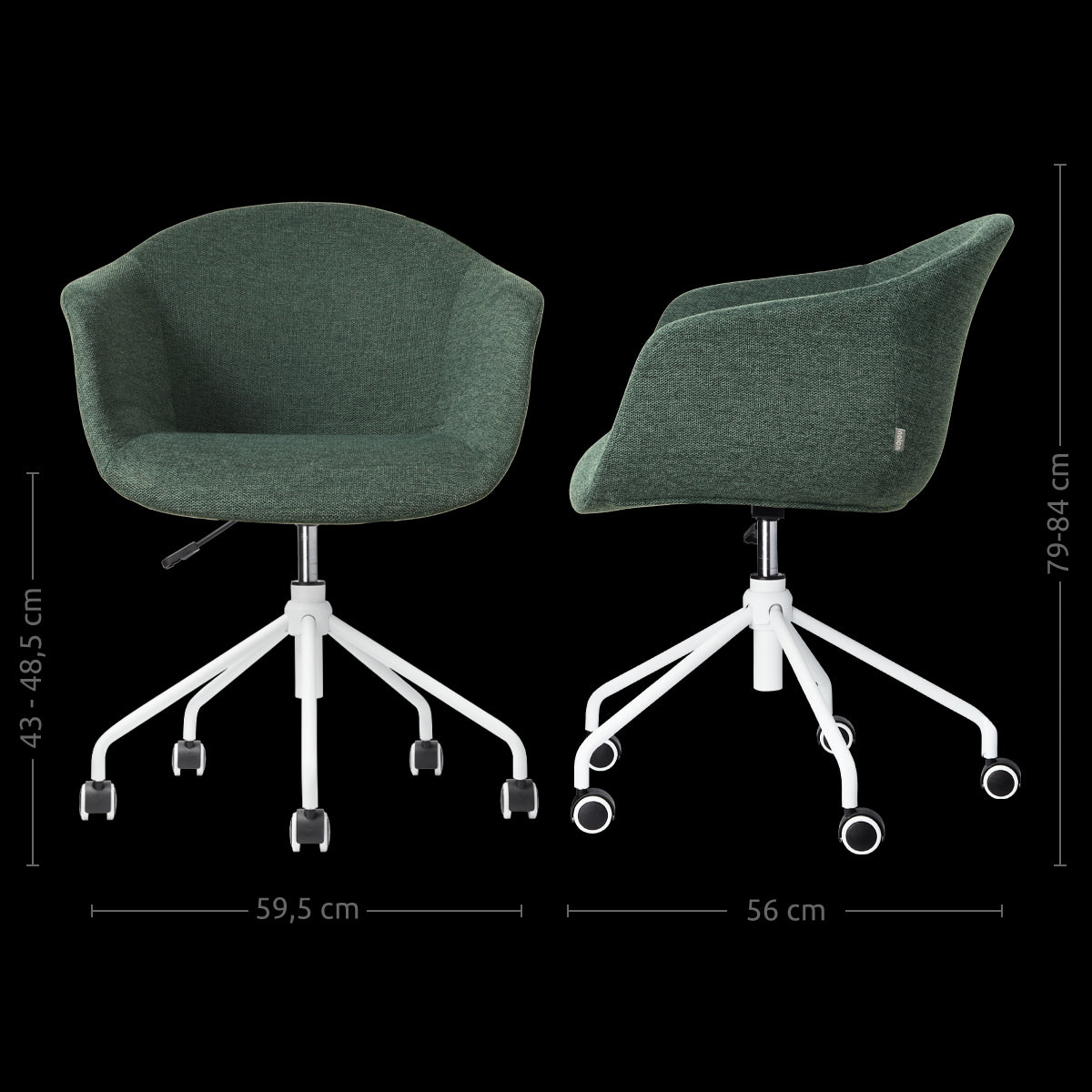 Deze bureaustoel heeft een robuust metalen onderstel met vijf soepel rollende wieltjes. De luxueuze stoffen zitting biedt ultiem zitgemak tijdens lange werk- of studeersessies. De ergonomisch ontworpen armleuningen zorgen voor optimale ondersteuning en verminderen spanning in de schouders en nek. Dankzij de verstelbare hoogte van het onderstel kan je de zithoogte aanpassen aan jouw bureau en persoonlijke voorkeur, zodat je altijd de juiste zithouding kan aannemen. Maak een keuze uit de zes verschillende kleuren bekleding en geef je kantoor of thuiswerkplek een upgrade met de Nout-Otis bureaustoel die stijl en functionaliteit perfect combineert. Comfortabel werken was nog nooit zo eenvoudig!