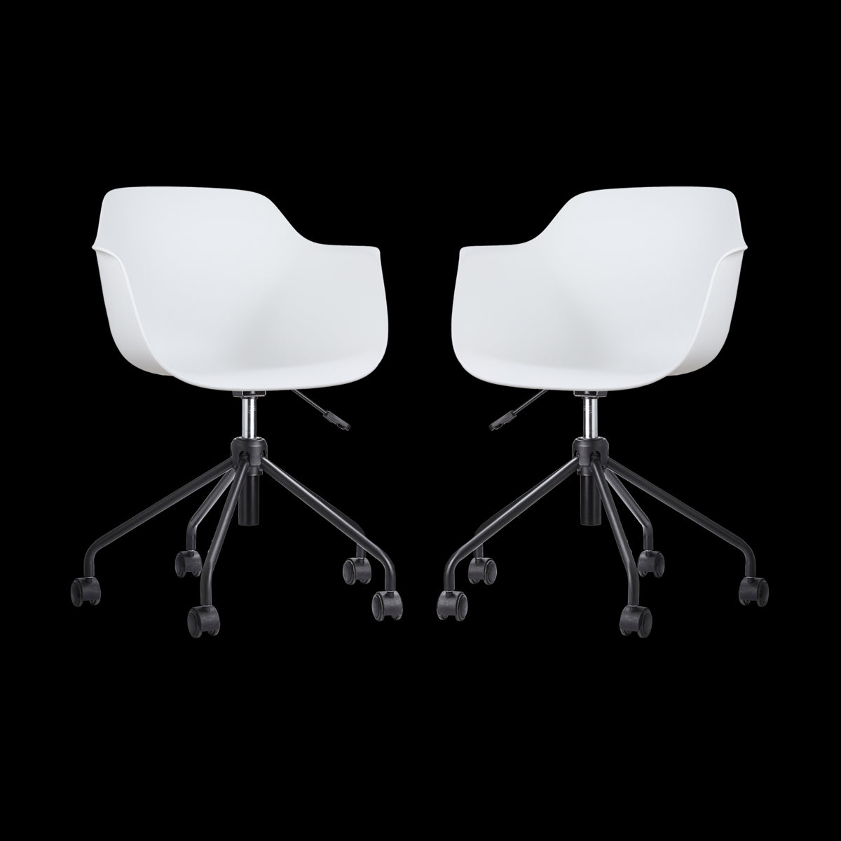 Deze set Nout-Puk bureaustoelen van Nolon ziet er niet alleen stijlvol uit, ze zitten ook nog eens erg comfortabel.