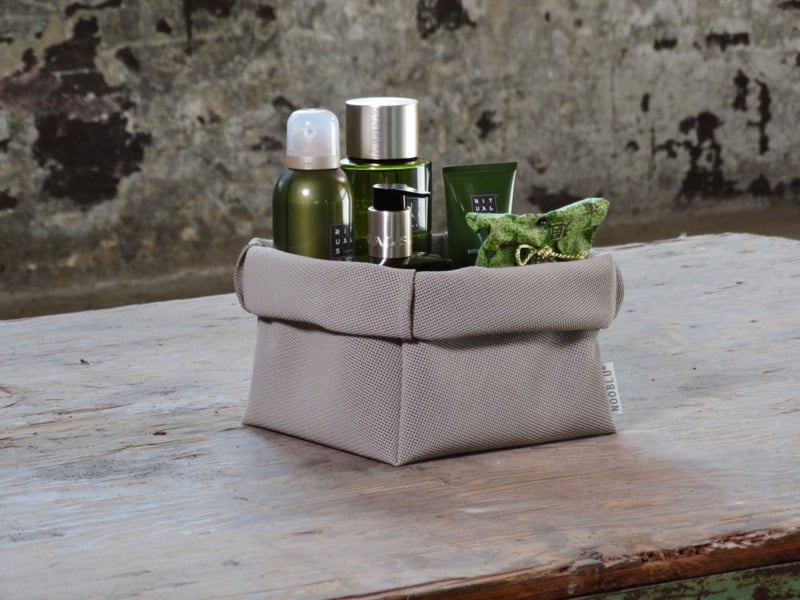 ZAQ is een duurzaam multifunctioneel mandje met een luxe look & feel. ZAQ is oersterk, machine wasbaar, kleurvast en handgemaakt van innovatief recyclet materiaal. Het in hoogte oprolbare mandje heeft in maat XL een afmeting van ongeveer 21 x 21 x 31 cm.