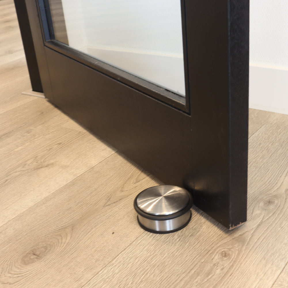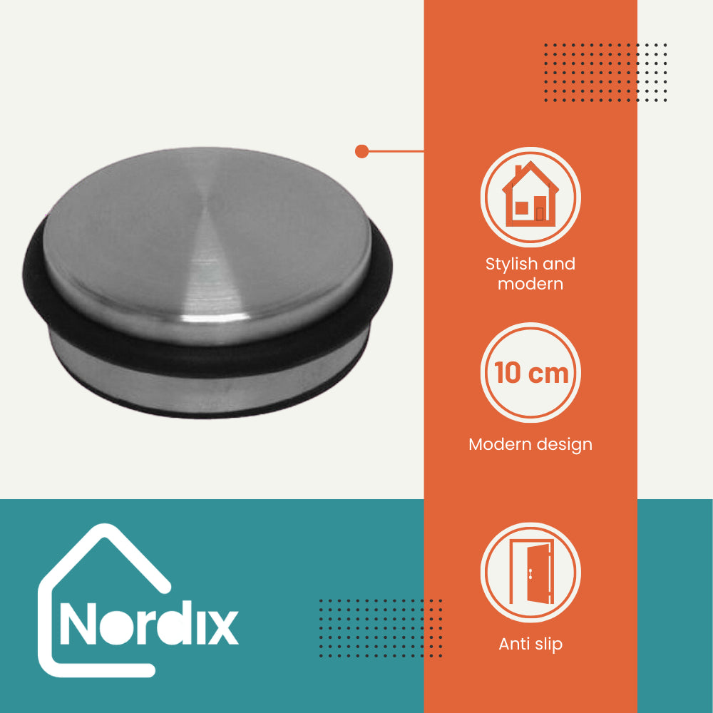 De ronde Nordix deurstopper anti-slip is handig voor het vastzetten van een deur. Erg handig als je wilt dat een deur bijvoorbeeld open blijft staan. De stopper heeft een hoogte van 4,5 centimeter en een doorsnee van 10 centimeter. De deurstop heeft een rubberen anti-slip voet en een rubberen beschermkap, zodat uw deuren of muren niet beschadigen. Door de anti-slip blijft hij stevig staan en glijdt hij niet weg op een gladde vloer. Hij is gemaakt van roestvrij staal. Hierdoor is hij ook buiten te gebruiken, zelfs wanneer het slecht weer is en het regent.