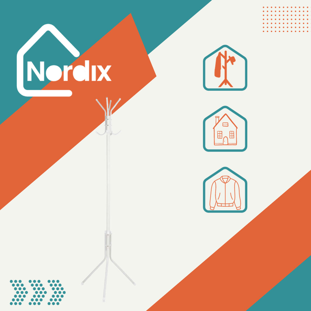 De staande kapstok van Nordix is ideaal voor het ophangen van jassen en tassen. De kapstok is voorzien van 4 haken voor jassen en 4 haken voor hoeden. Ideaal in kleinere ruimtes.