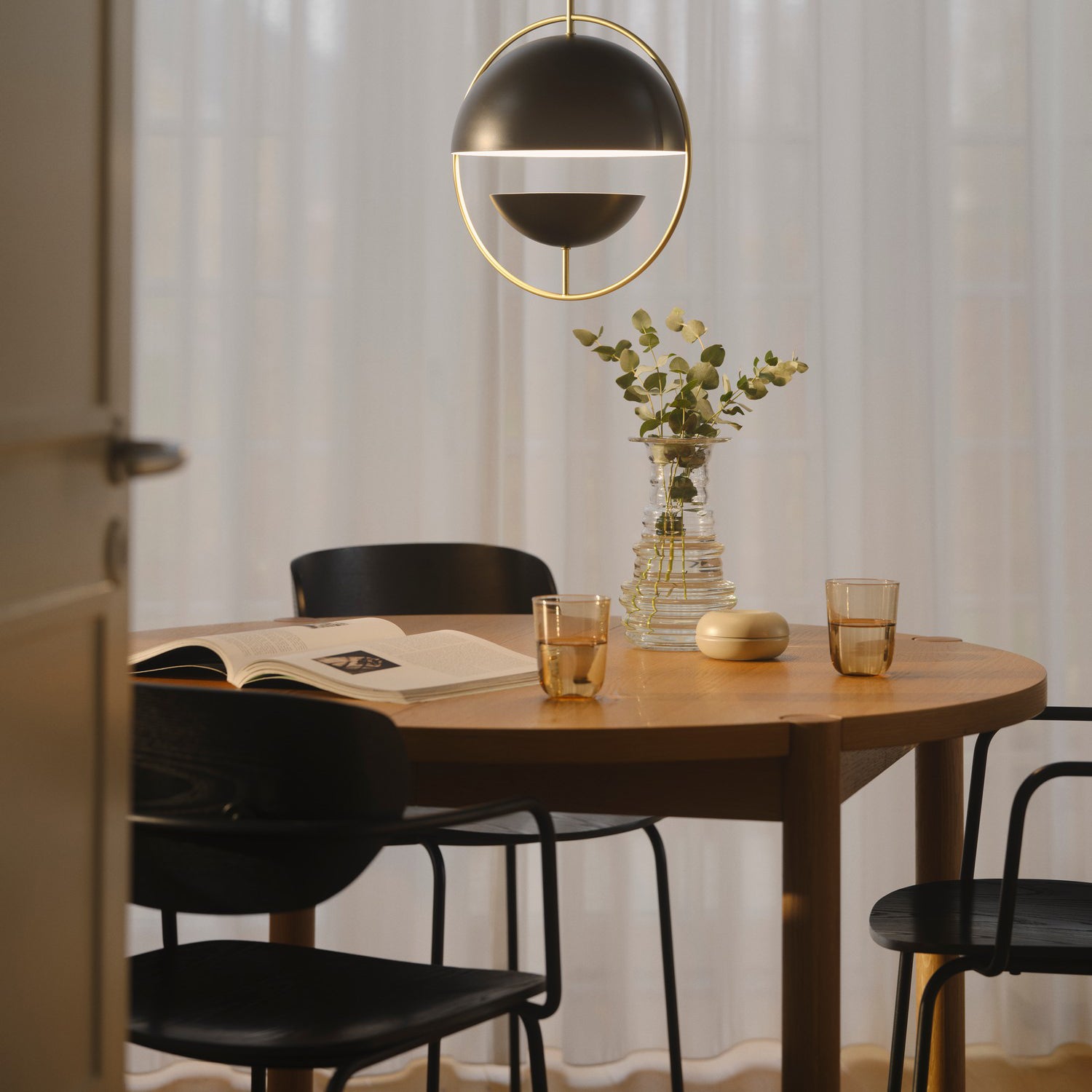 De Nordlux Tavia hanglamp combineert minimalistisch design met een vleugje glamour. De matte metalen kappen en het messingkleurige detail zorgen voor een stijlvol item dat diffuus licht geeft — perfect boven de eettafel of in de hal.