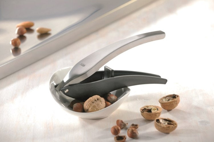 De Manolo notenkraker van Gefu heeft een ergonomisch en tijdloos design. De 2 verschillende compartimenten in deze notenkraker zorgen ervoor dat je zowel grote als kleine noten kunt kraken. Hij is hierdoor geschikt voor walnoten, hazelnoten, pecan noten en amandelen en kraakt de noten zonder de kern te beschadigen. Na gebruik kan hij gereinigd worden in de vaatwasser.