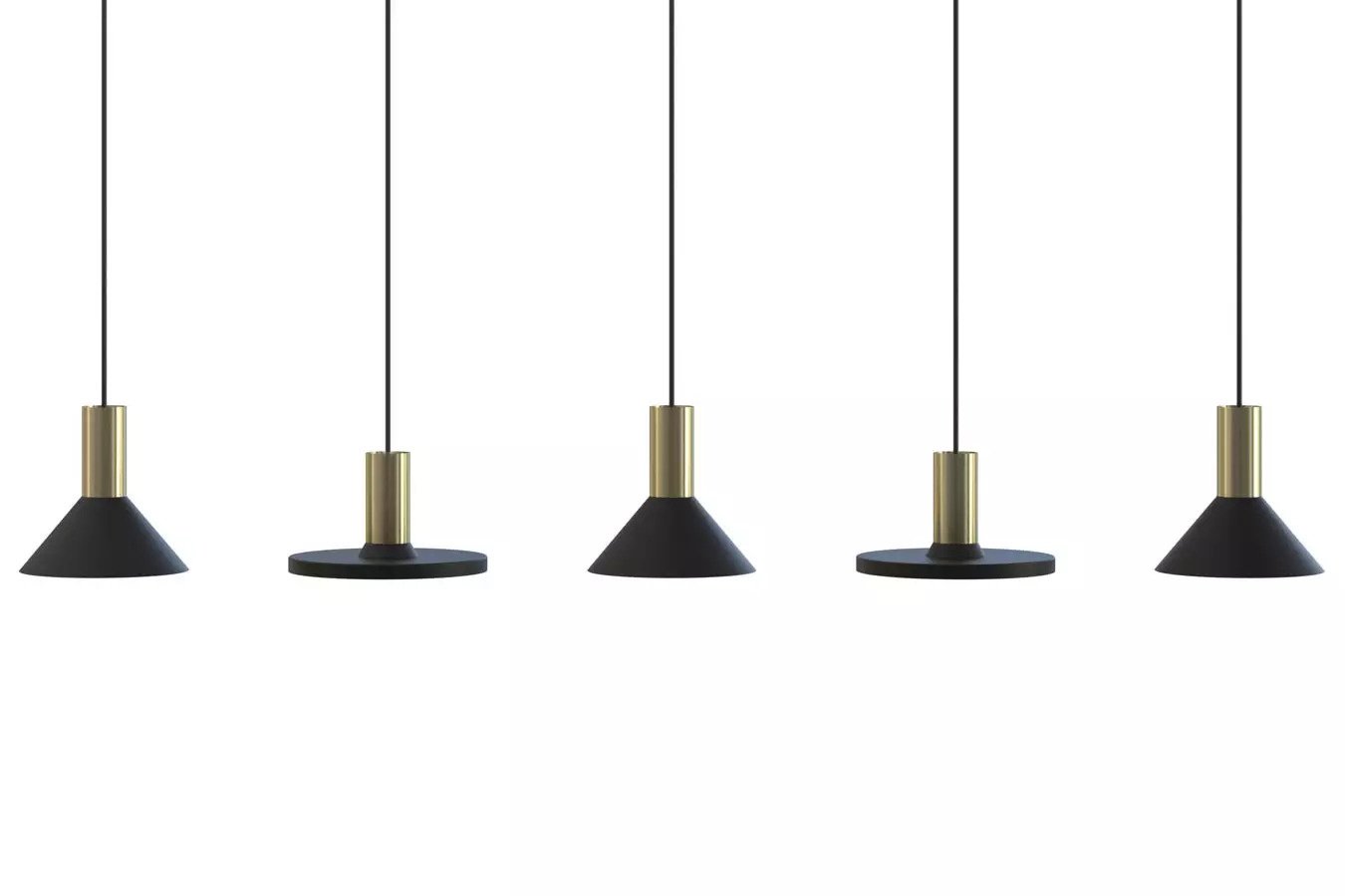 Leuke speelse hanglamp voorzien van 2 verschillende soorten kapjes, geschikt voor 5x GU10 LED lampen (excl.) en perfect geschikt voor slimme (smart) GU10 lampen. De lichtbronnen vallen in de kappen en komen er niet onder uit.