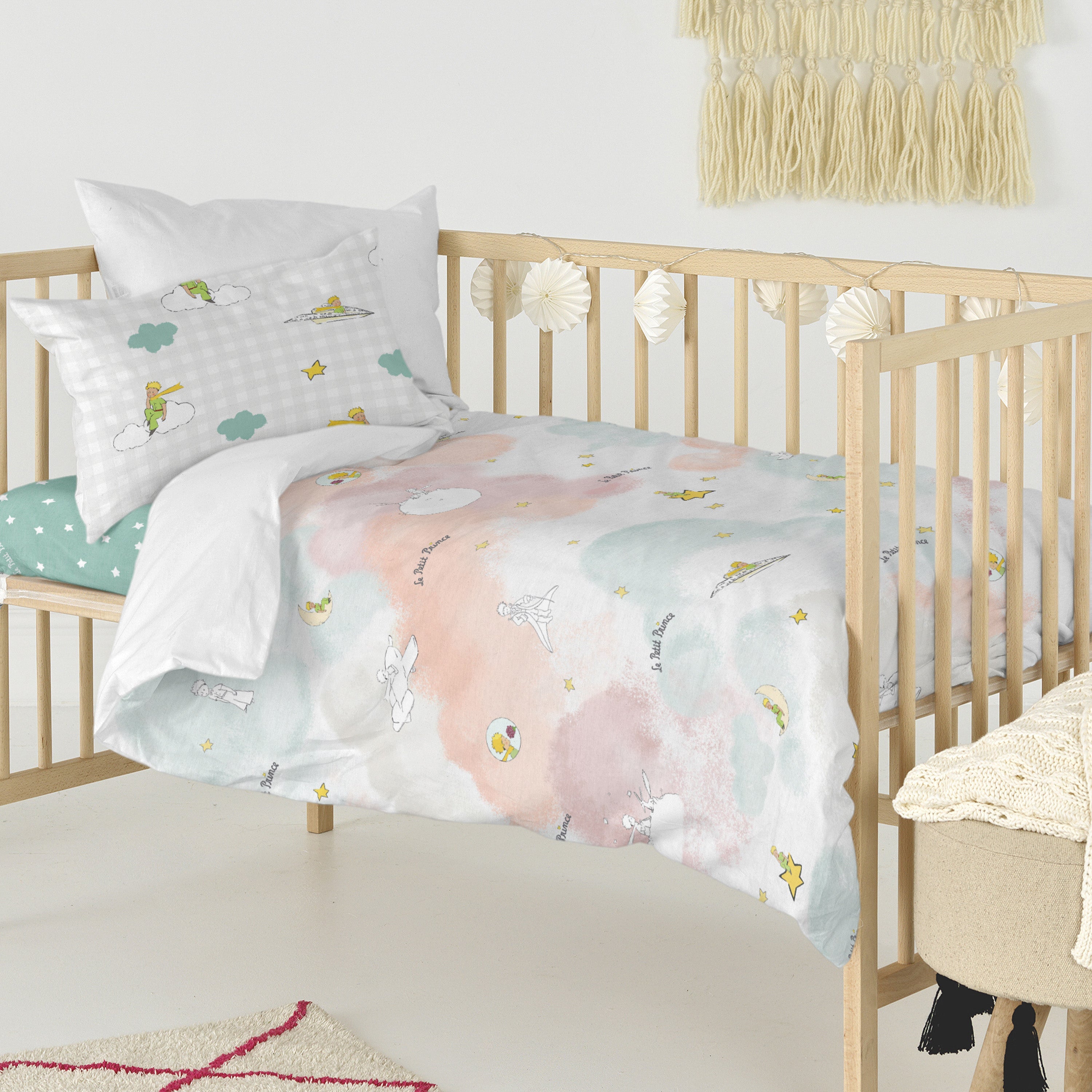 Nuages Dekbedovertrek wieg 2-delig Le Petit Prince, Veelkleurig, 100% katoen, de kwaliteit van 150 TC