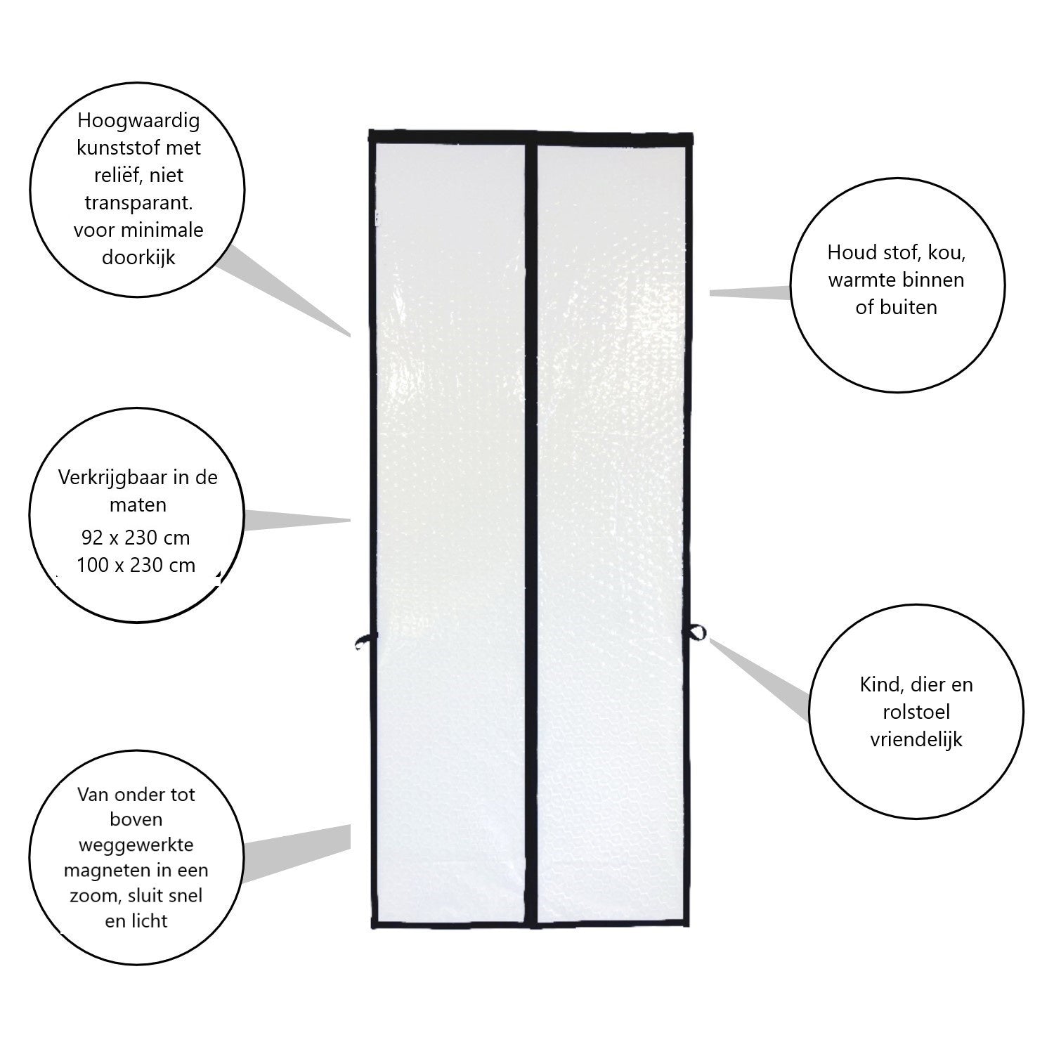 - Houd door de afsluiting warmte beter binnen en kou beter buiten als de deur open staat.