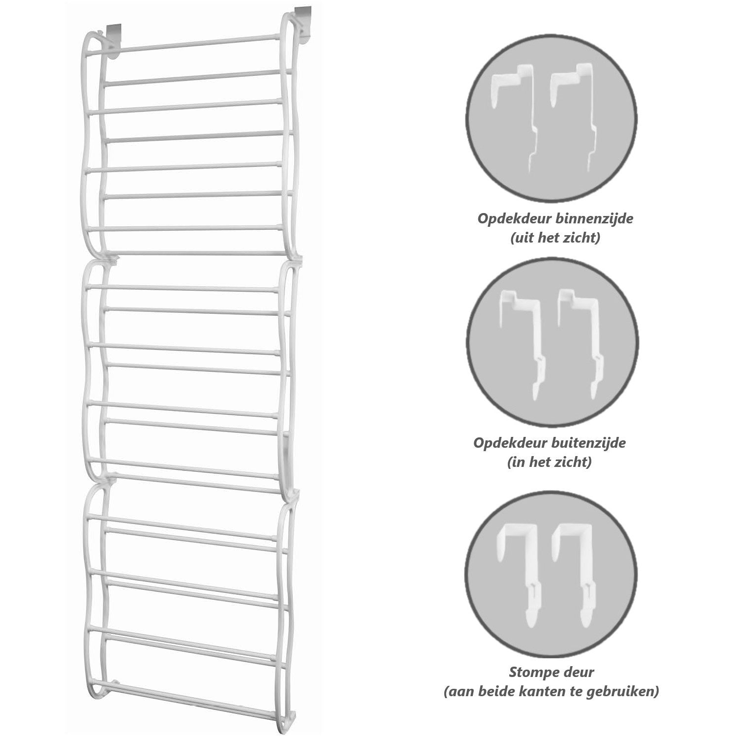 ✅ UNIEK, geleverd met haken voor beide kanten van een opdekdeur en stompe deur: Heeft u een opdekdeur of stompe deur: Geen probleem! Niemand levert de deurhaken voor het opdekdeuren aan de binnenzijde en dus uit het zicht, dat maakt ons hangend schoenenrek uniek!