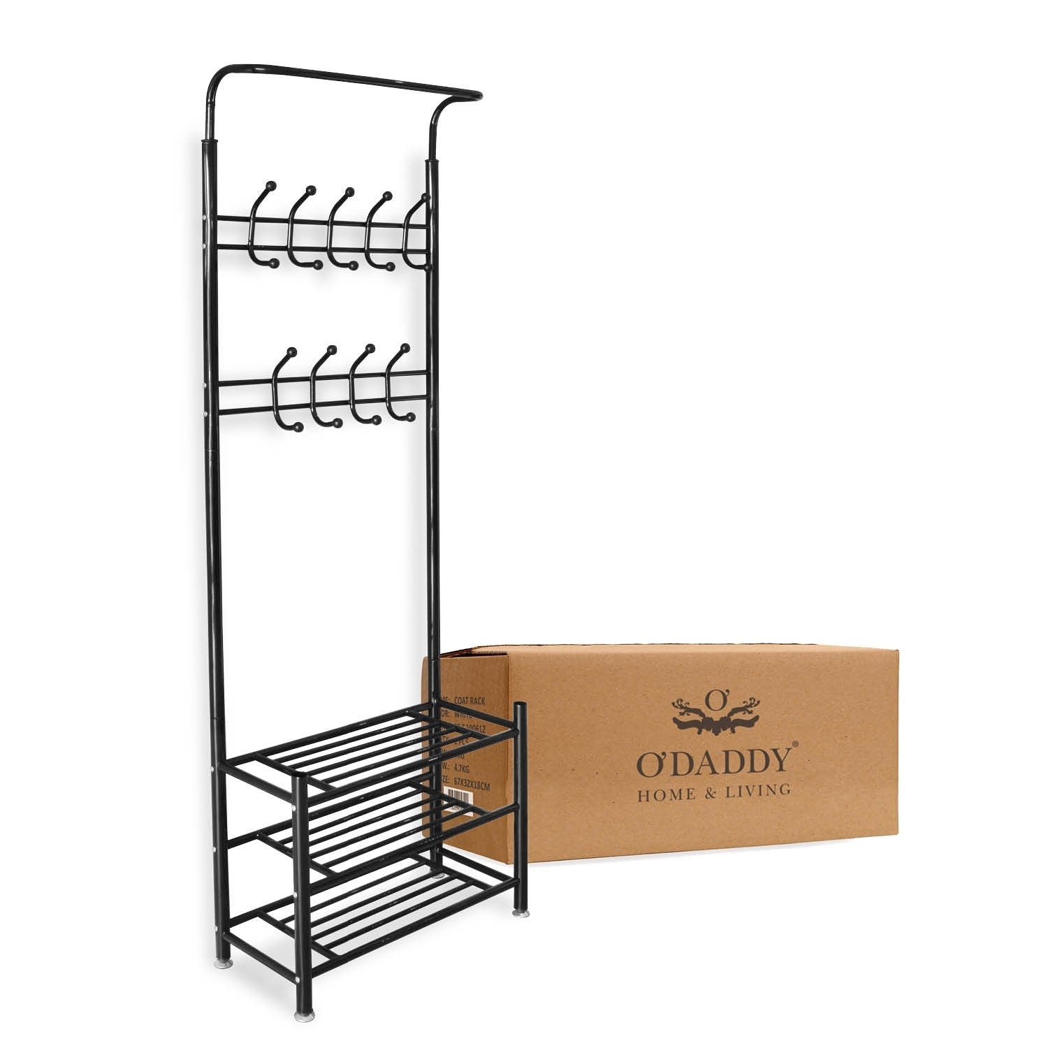 De O'DADDY® staande kapstok en garderoberek is een ideale opruimer. Makkelijk in elkaar te zetten en met stelpoten geleverd, dus staat altijd recht, ook op een oneven vloer. Deze staande kapstok, garderoberek en schoenenrek in 1 is de uitkomst. Eenvoudig te installeren en direct een opgeruimd huis, dat willen we allemaal, want niets is zo vervelend als rondslingerende spullen.