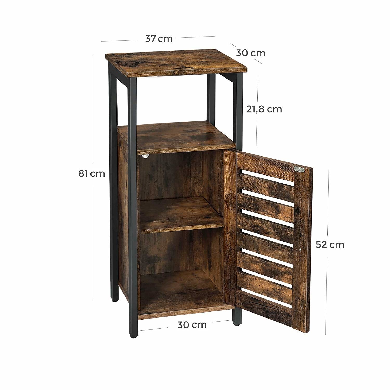 SOFT CLOSE: De stijlvolle ventilatie deur van deze compacte kast opent zeer makkelijk. De kastdeur is voorzien van een magneet sluiting. Achter de deur zit nog een extra, in hoogte verstelbare plank die veel opbergruimte voor al dierbare items. De robuuste mix van stevig ijzer en slijtvast hout geeft de multifunctionele kast een hoge mate van stabiliteit; laadt elke bovenste plank met items tot 20 kg.