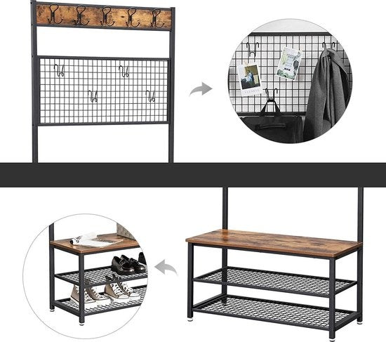 O'DADDY - Vasagle Garderoberek met Kapstok - Schoenenrek - Industrieel