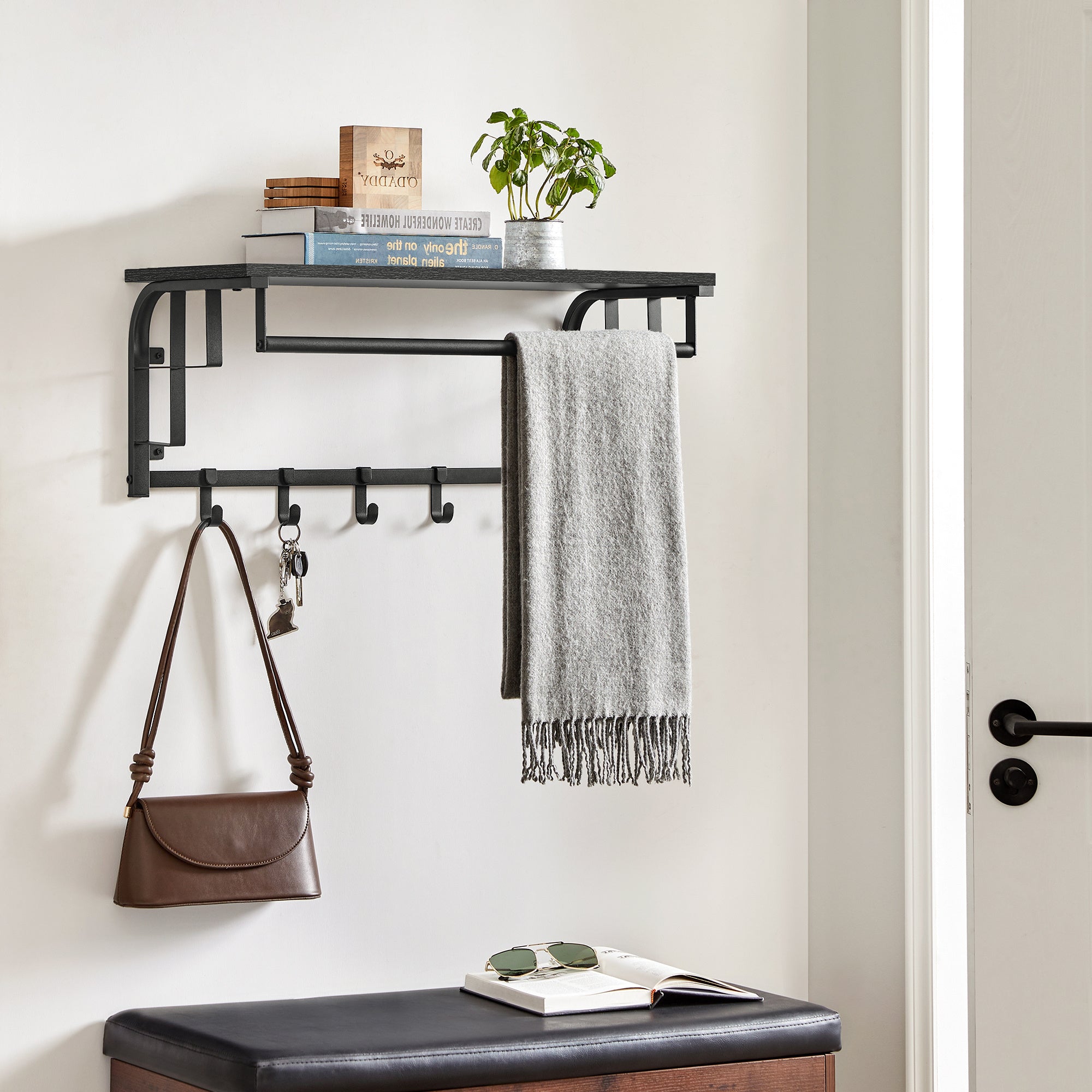 3-in-1 design: Deze kapstok wordt geleverd met een grote plank (66 x 30 cm), een ophangrail en 5 haken om met een minimale ruimte aan uw verschillende behoeften te voldoen; te gebruiken als displayplank, kapstok of hoedenplank