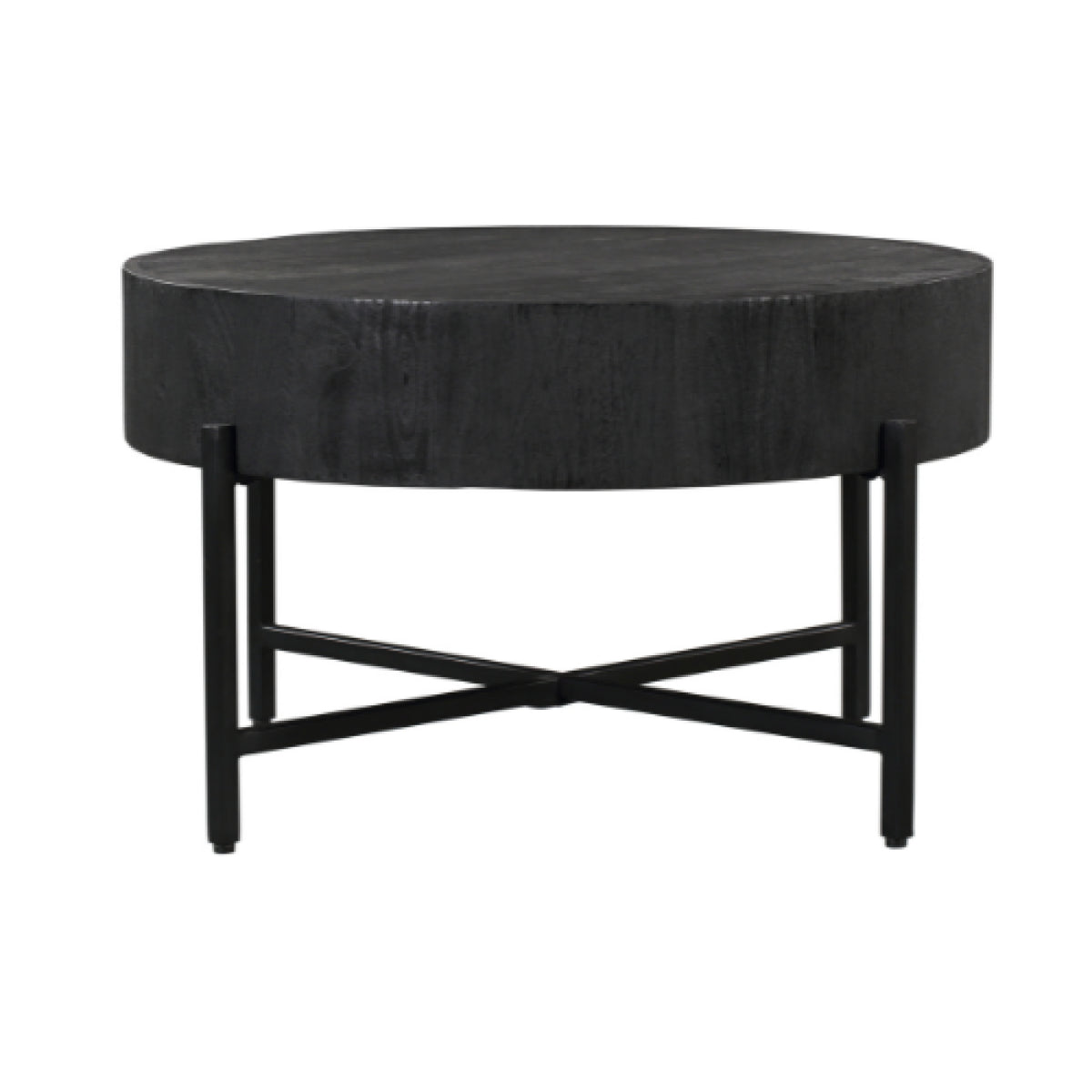 Industriële ronde bijzettafel van zwart mangohout