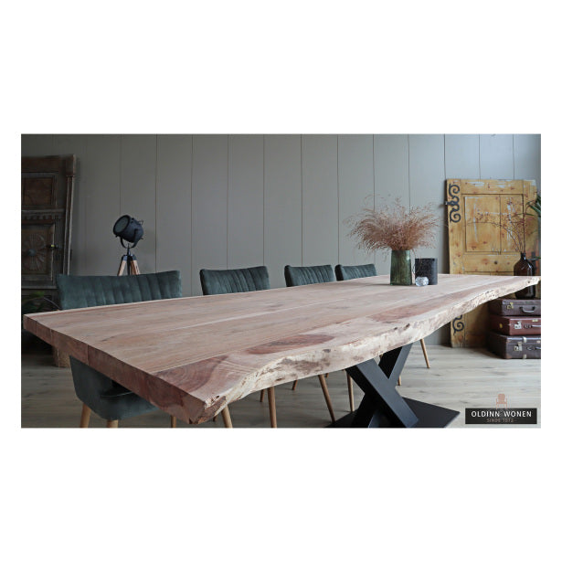 Bij Old Inn Wonen vindt u boomstamtafels van onbehandeld Acacia voor scherpe prijzen. De eettafels van Acacia zijn verkrijgbaar in diverse maten en met diverse soorten metalen poten.