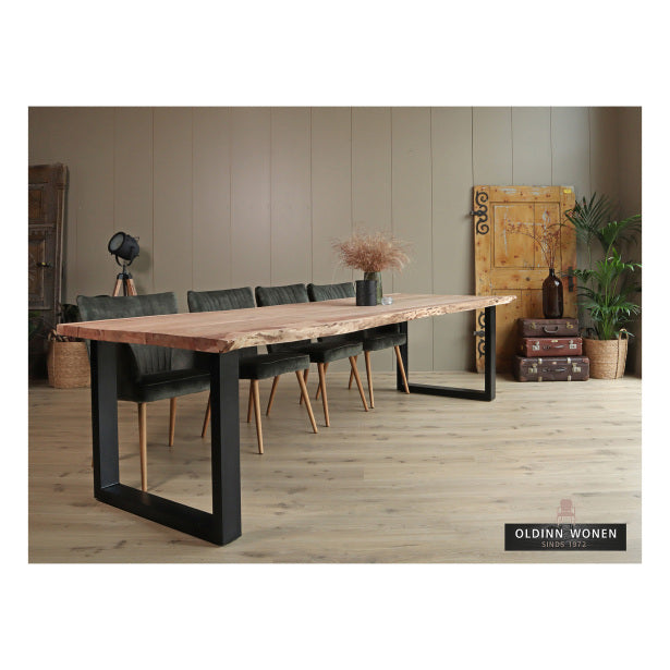 Old Inn Boomstamtafel Industrieel Acaciahout 200x100cm met U poot smal