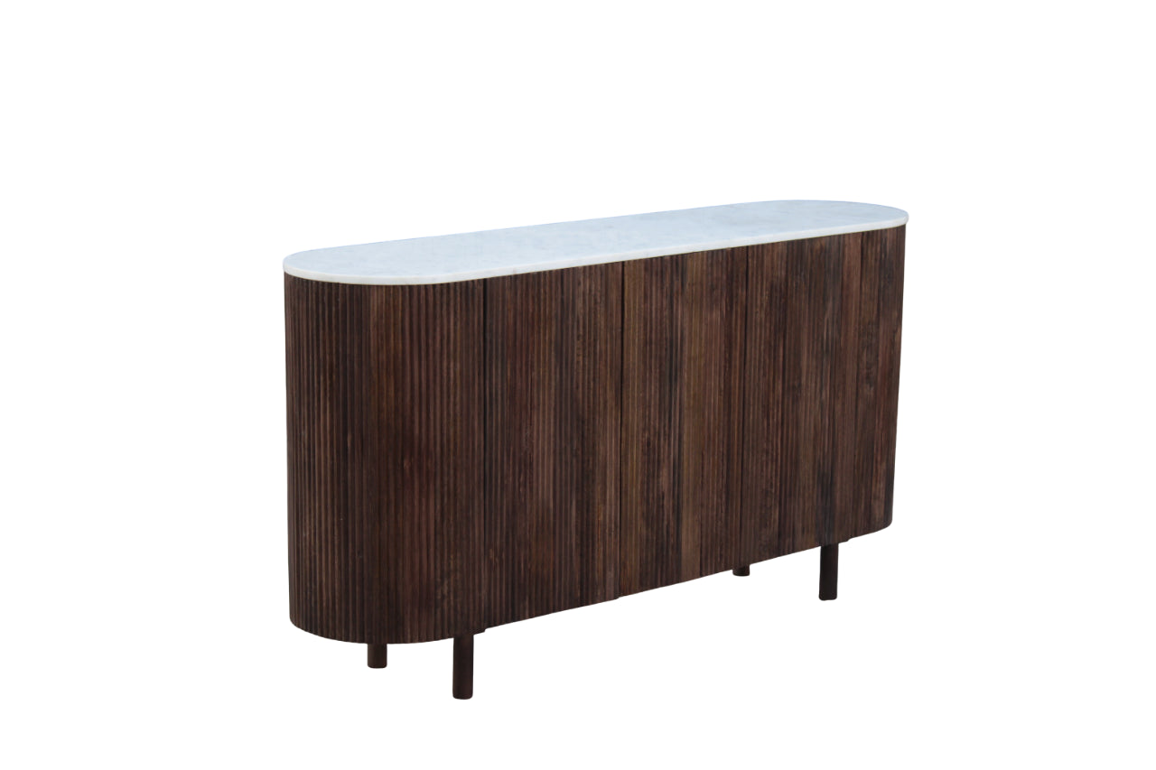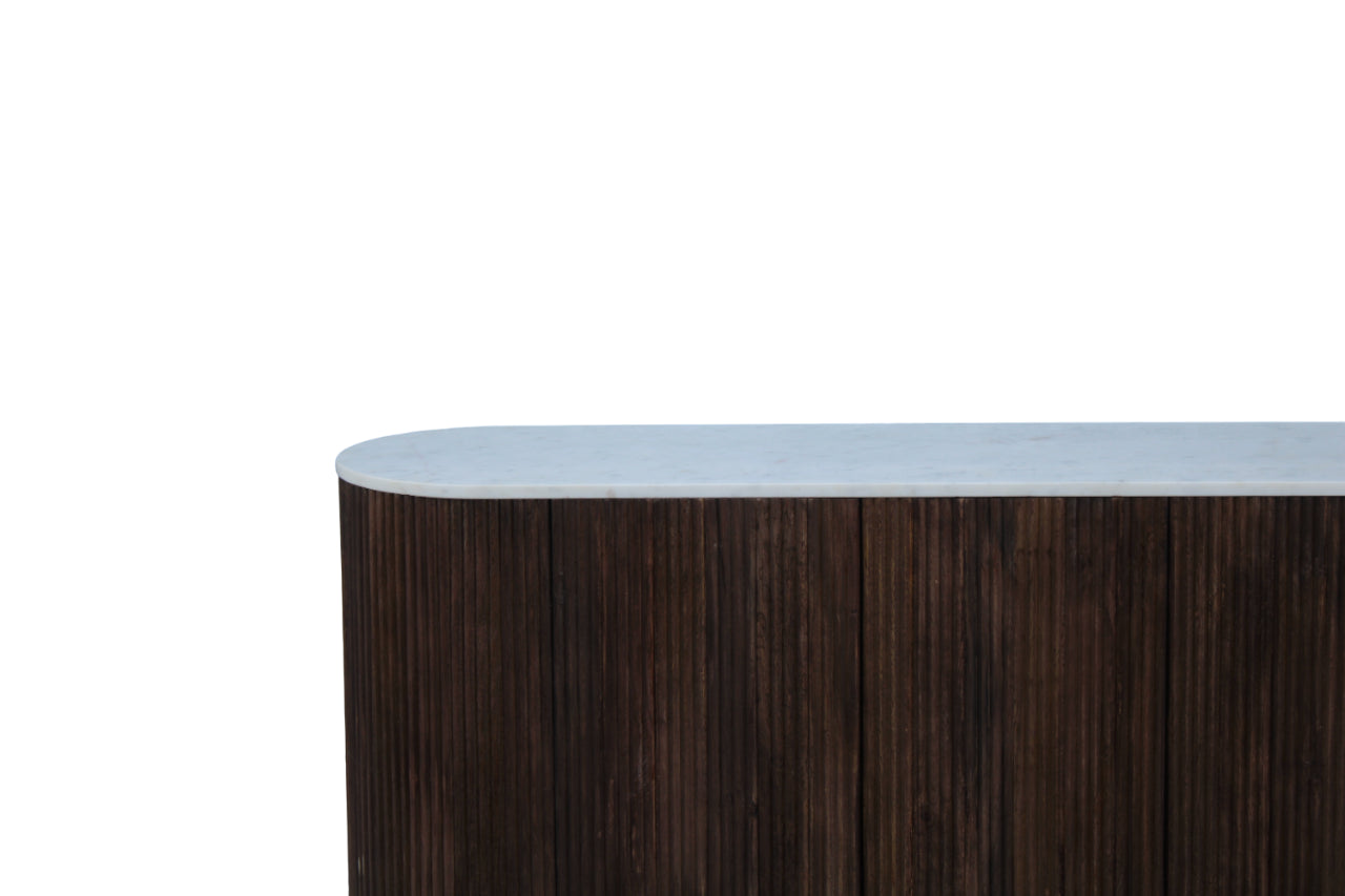 Dressoir Parijs combineert luxe en elegantie in één stijlvol meubelstuk. Het dressoir is gemaakt van hoogwaardig mangohout in een warme bruine tint, voorzien van een prachtig wit marmeren blad dat zorgt voor een verfijnde en tijdloze uitstraling. De zwartkleurige metalen pootjes voegen een vleugje glamour toe en maakt dit meubel een echte eyecatcher in je interieur.