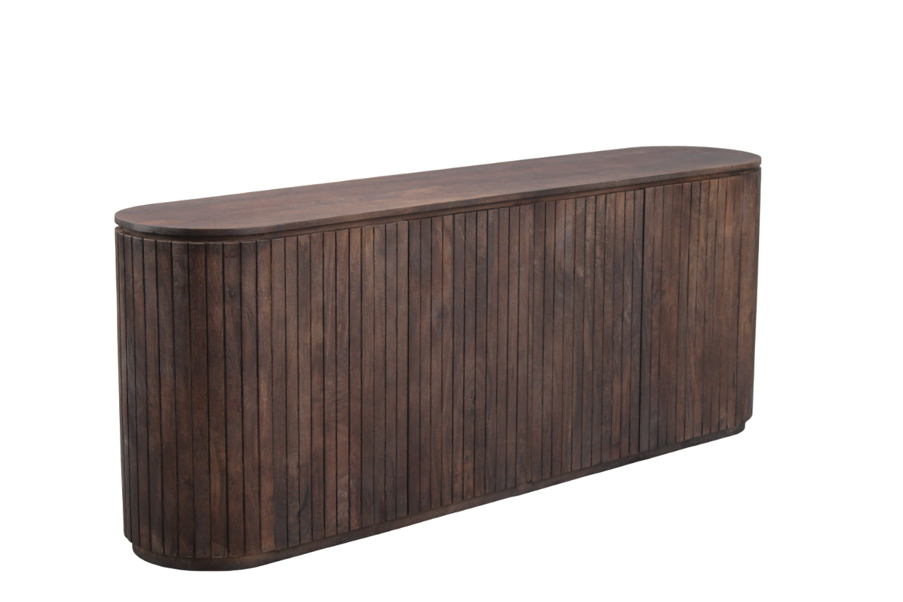 Het Dressoir Stockholm 215 cm is een verfijnd en modern meubel dat elegantie uitstraalt in elk interieur. Het dressoir heeft een ovale vorm, wat zorgt voor een zachte uitstraling en een luxe uitstraling in de ruimte. Het dressoir is voorzien van vier deurtjes, die tot de grond reiken, en biedt daarmee zowel een stijlvolle als praktische opbergruimte. De strakke lijnen en het minimalistische ontwerp maken dit dressoir een veelzijdige toevoeging aan je woonkamer of hal.