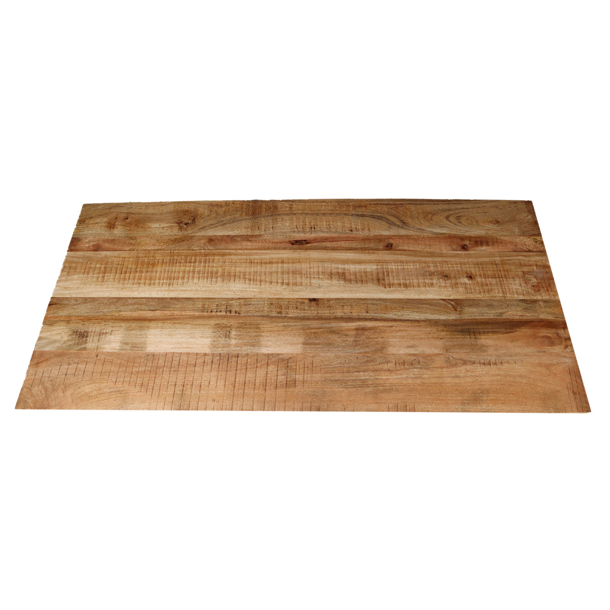 Het tafelblad is gemaakt van massief mangohout en is niet opgedikt met een extra rand.