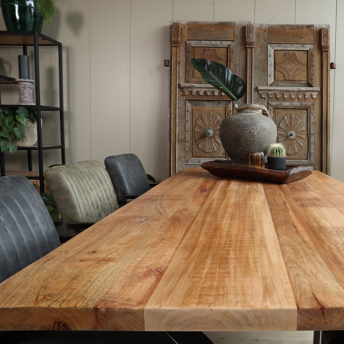 Eettafel blad rechthoekig voor 8 personen van massief mangohout met een bladdikte van 4cm.