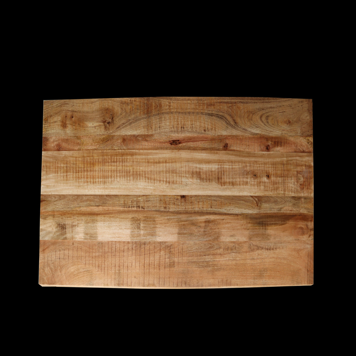 Het tafelblad is gemaakt van massief mangohout en is niet opgedikt met een extra rand.