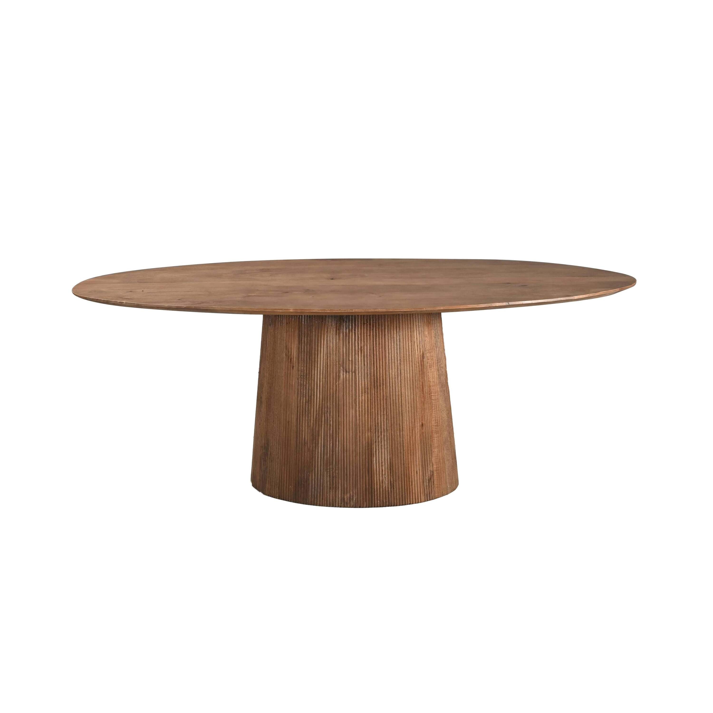 Eetkamertafel ovaal Rome: ✓ Type tafel: Eettafel ✓ Vorm tafelblad: ovaal met afgeschuinde rand ✓ Materiaal tafelblad: Mangohout ✓ Kleur tafelblad: Bruin ✓ Afwerking tafelblad: Afgelakt ✓ Dikte tafelblad: 2,5cm ✓ Type onderstel: ovale poot ✓ Materiaal onderstel: Mango hout ✓ Kleur onderstel: Bruin ✓ Aantal personen: 6 ✓ LxBxH: 240x110x76 ✓ Merk: Old Inn Wonen