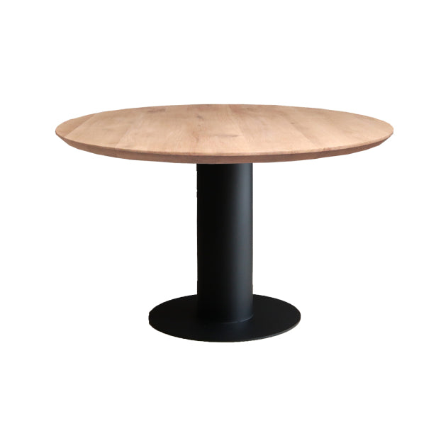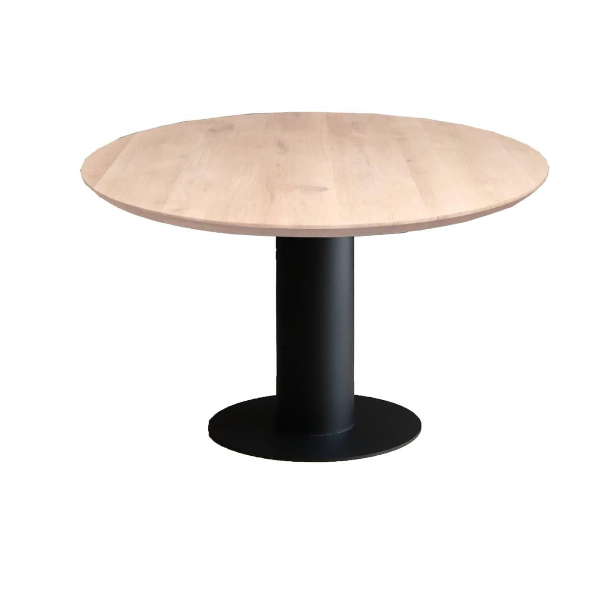 Old Inn Eetkamertafel Rond Eiken facet 140cm met kolompoot