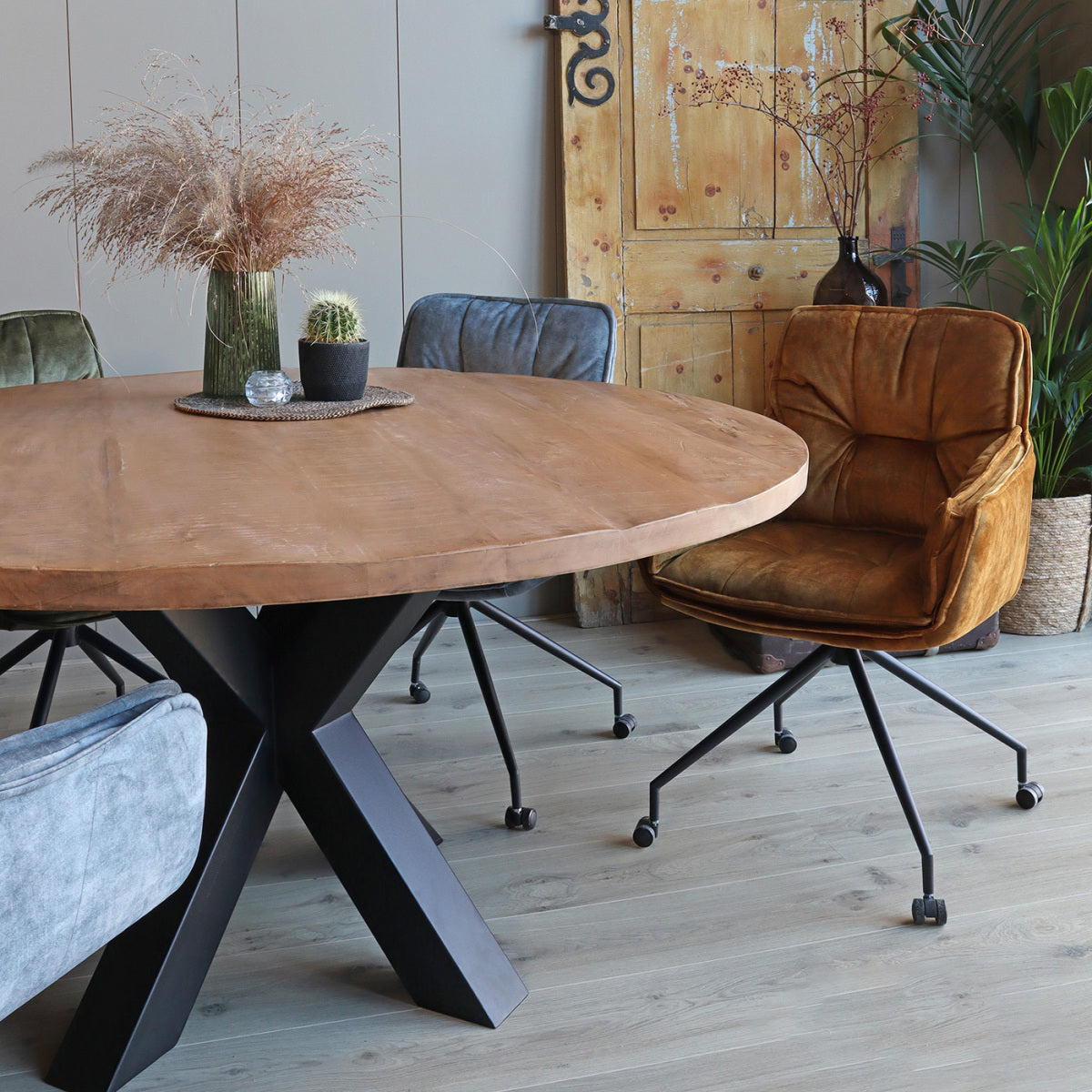 - MATERIAAL ✔ Een tafelblad van mangohout met een nature finish met een onderstel van metaal. Het tafelblad is aan de onderzijde van stalen strips die