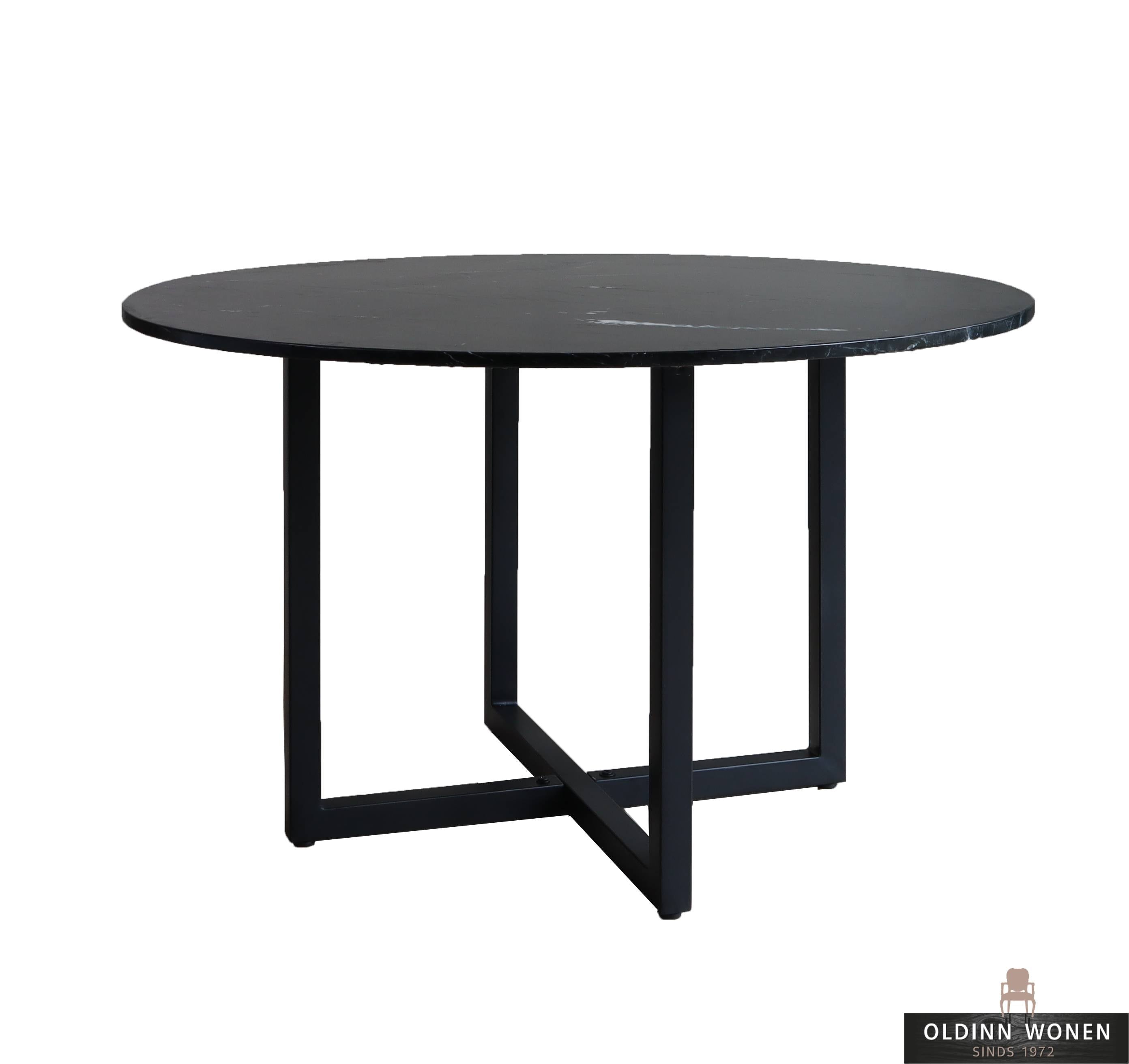 Old Inn Eetkamertafel Rond Zwart Marmer Zwart Metalen U Kruispoot 120