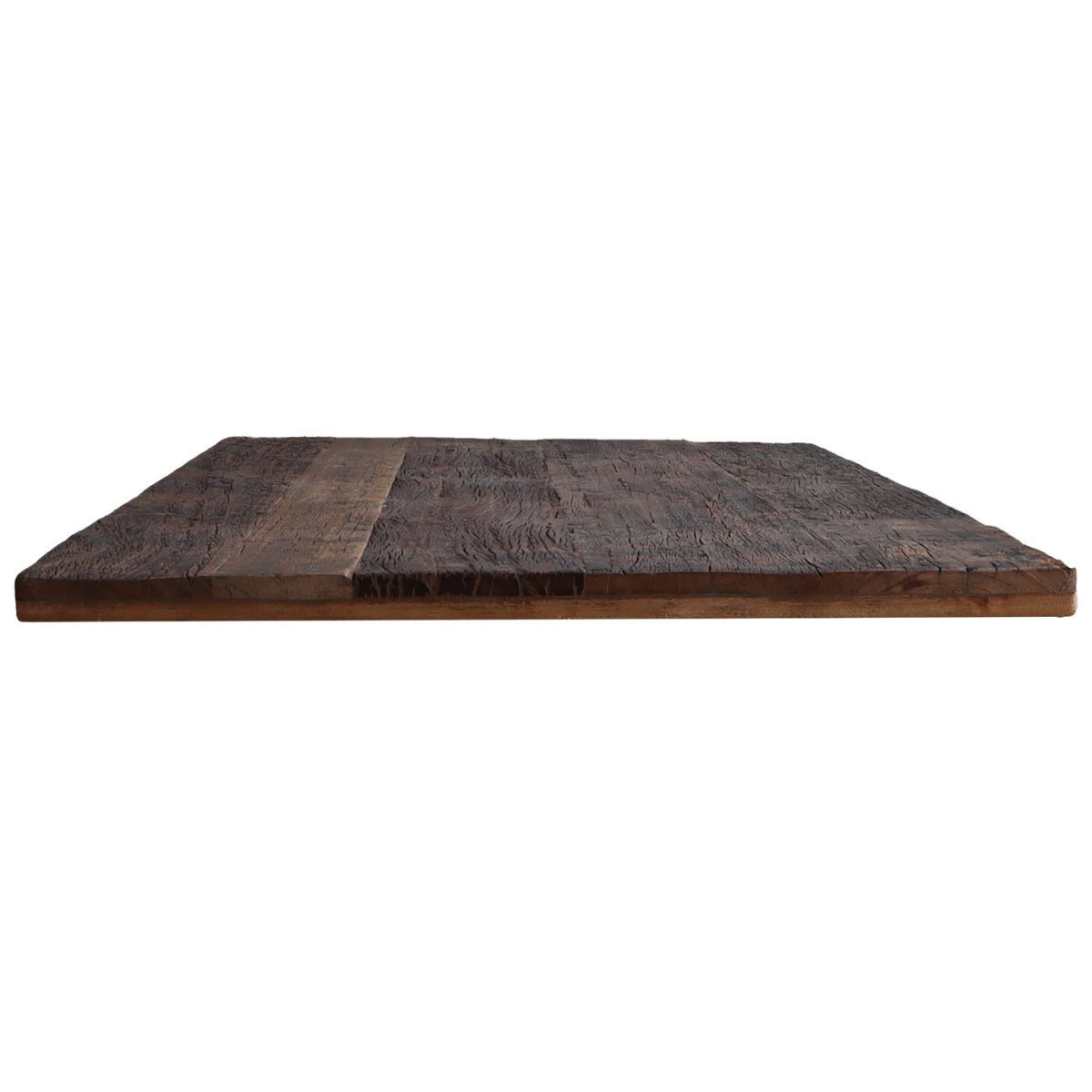 Eettafel blad rechthoek voor 6 personen van onbewerkt wagon hout met een bladdikte van 5cm.