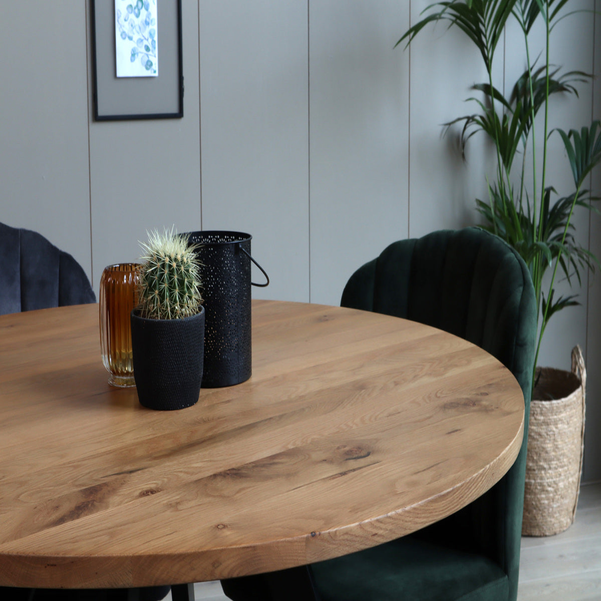 - DESIGN ✔ De ronde eetkamertafel is weer helemaal terug van weggeweest. Tafel Eddy stamt af van de vintage ronde eettafel die met zijn metalen
