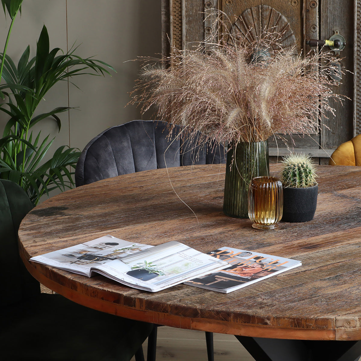 Voor een unieke eetkamertafel moet u bij Old Inn Wonen zijn. Dit prachtige blad is gemaakt van oude gerecyclede wagondelen. De planken ervan zijn vaak net zo gehavend als de goederenwagons zelf. Er zitten namelijk ware kunstwerken onder de dikke lagen vuil verscholen! Het resultaat is prachtig: de diepe groeven, het eigenzinnige karakter en de kenmerkende boutgaten worden weer zichtbaar.