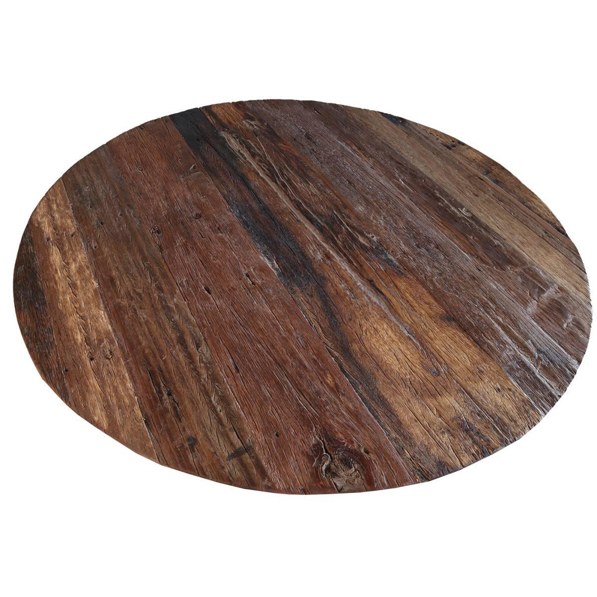Een uitstekende keuze voor wie op zoek is naar hout met een warm karakter en rijke historie. Het blad is verkrijgbaar met diverse diameters; 130- , 140- en 150 centimeter.