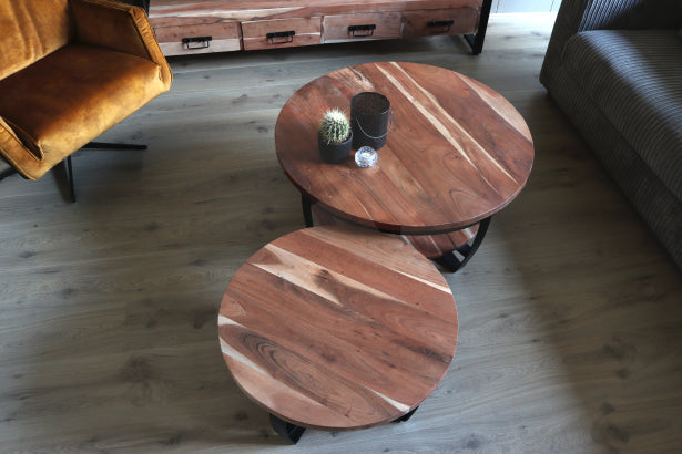 Salontafel rond industrieel van acaciahout