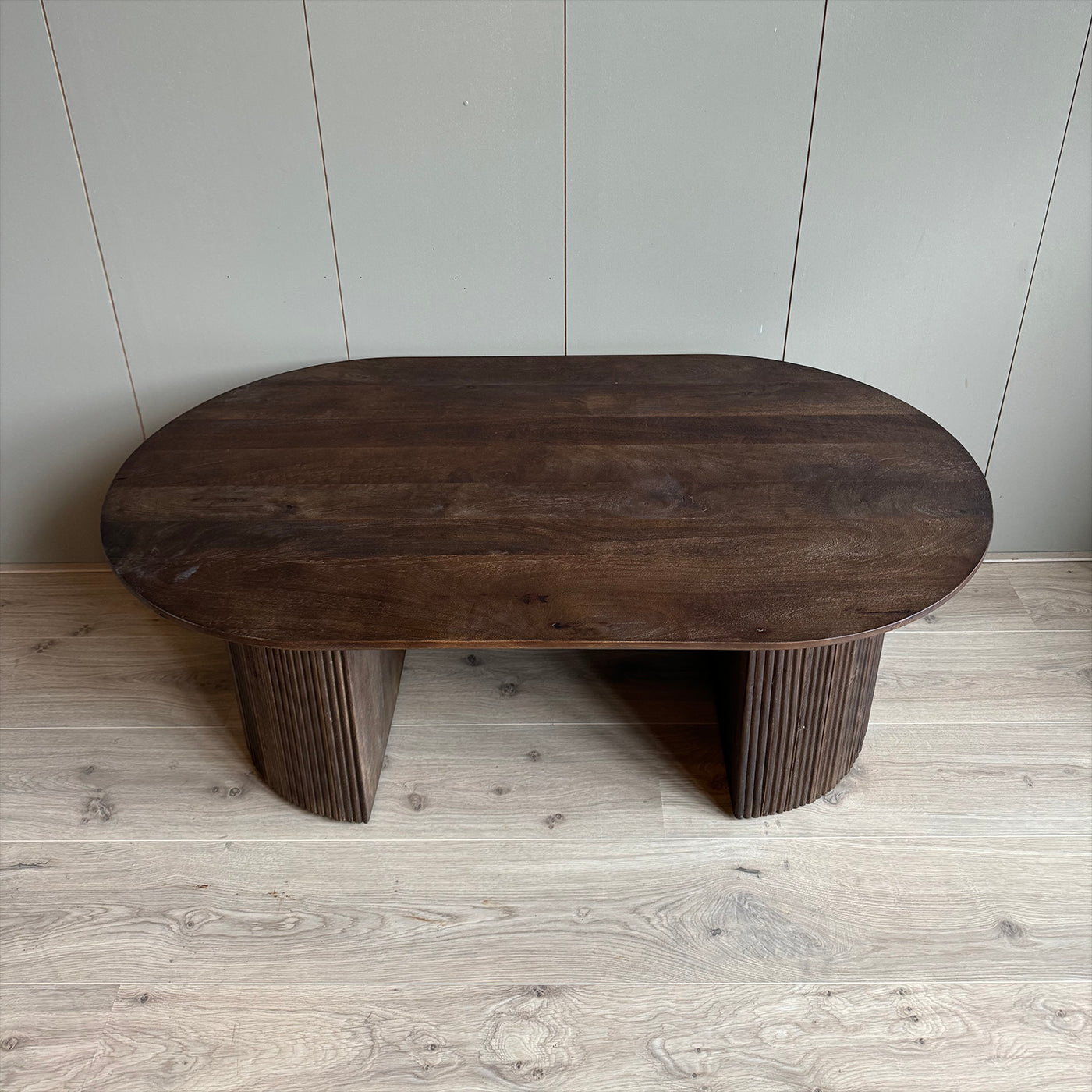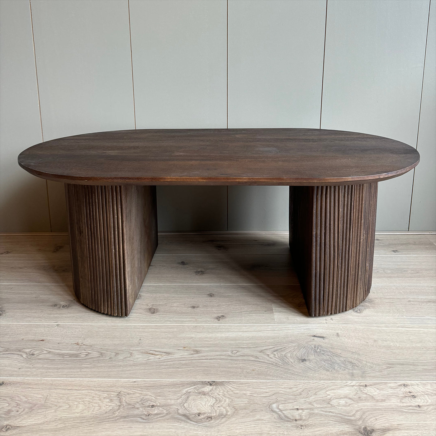 De salontafel Luca in bruine kleur is een verfijnd en praktisch meubelstuk dat een warme en uitnodigende sfeer brengt in elke woonkamer. Met een lengte van 120 cm en een Deens ovale vorm biedt deze tafel een elegant en eigentijds ontwerp, ideaal voor zowel moderne als traditionele interieurs. De ovale vorm zorgt voor vloeiende lijnen en een zachte uitstraling, waardoor de tafel een centraal punt wordt in uw leefruimte.