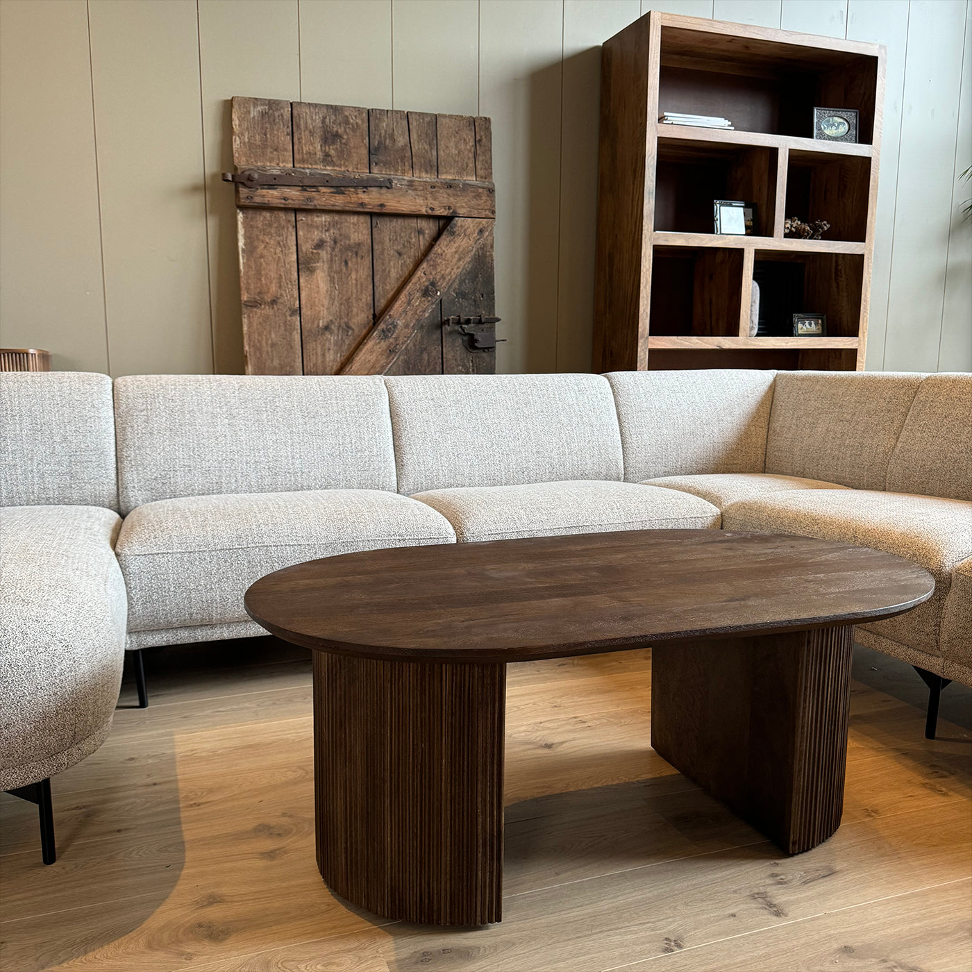Met een lengte van 120 cm biedt de salontafel Luca voldoende ruimte voor het plaatsen van decoratieve items, boeken, tijdschriften en dranken. De Deens ovale vorm maakt het gemakkelijk om rondom de tafel te bewegen en draagt bij aan een comfortabele en ontspannen sfeer in uw woonkamer.