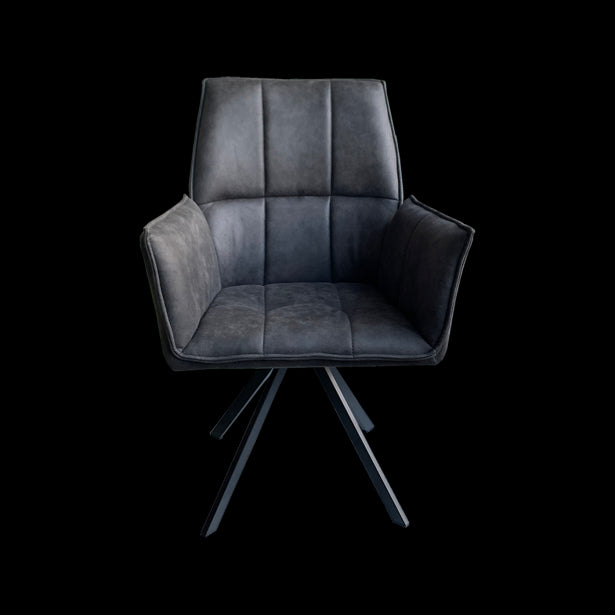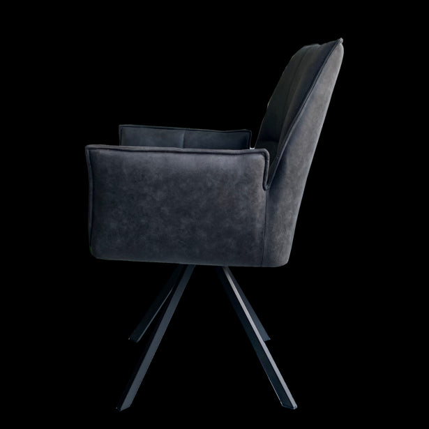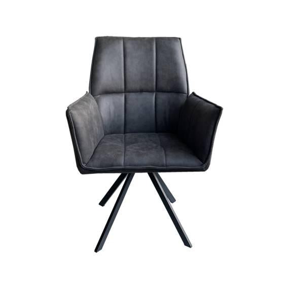 De elegante antraciet grijze eetkamerstoel Sam biedt aangenaam zitcomfort! De kuipvormige eetstoel is bekleed met immitatieleer en wordt ondersteund door zwart metalen poten. Doordat Sam een kuipstoel is zorgt hij ervoor dat de stoel het lichaam als het ware omarmt. Een heerlijke armstoel om lang in na te tafelen.