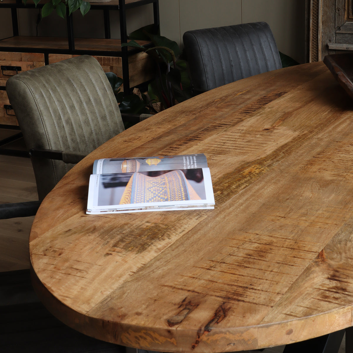 Old Inn Tafelblad Ovaal Industrieel Mangohout 200x110x4cm