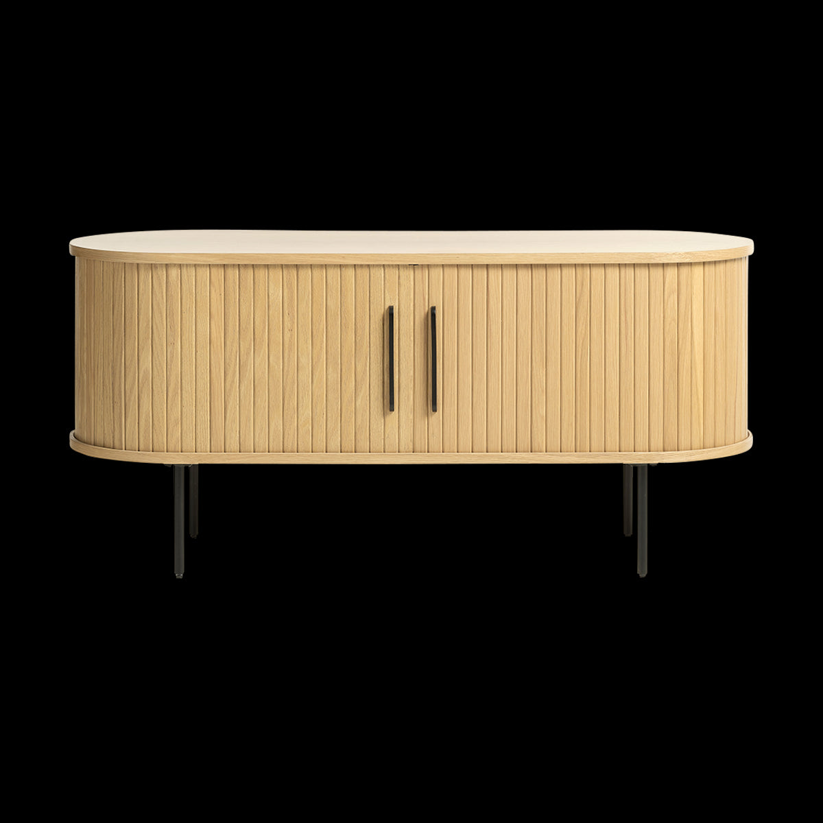 Het Lenn tv-meubel van Olivine is een modern houten tv-meubel met ovale vorm.